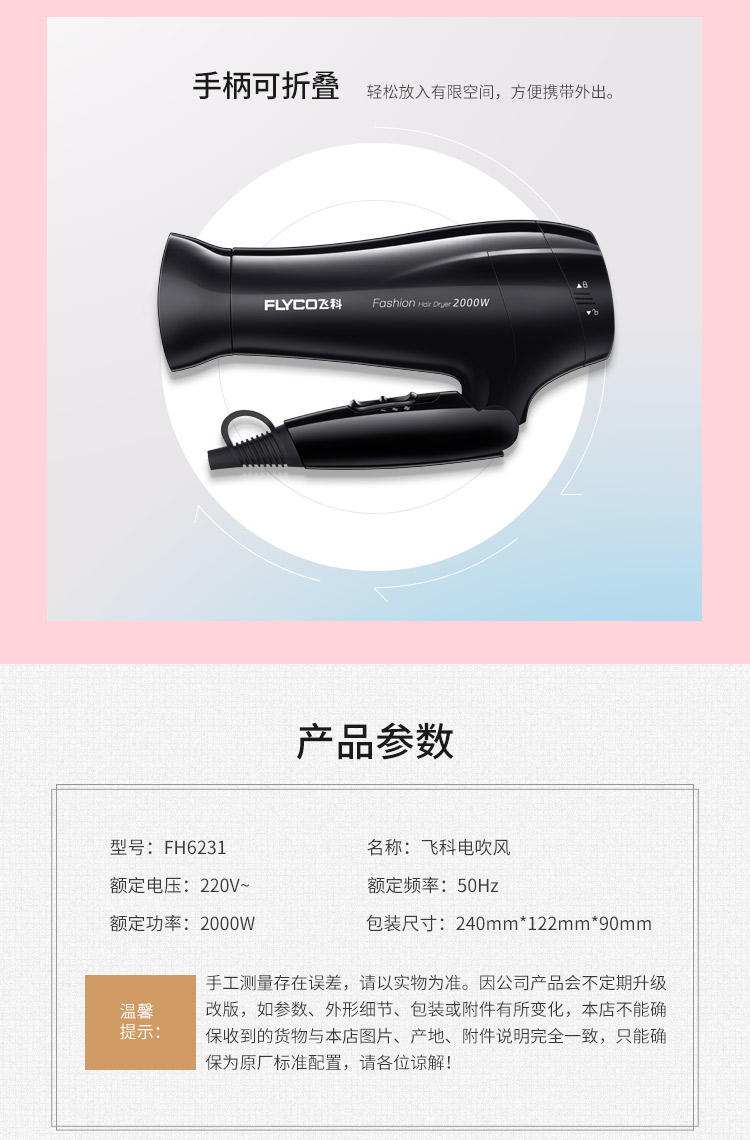 您所在的位置:首页 > 家用电器  > 个护健康 > 电吹风  > 飞科(FLYCO) 吹风机家用静音 大功率电吹风 专业电吹风机发廊电风筒FH6231