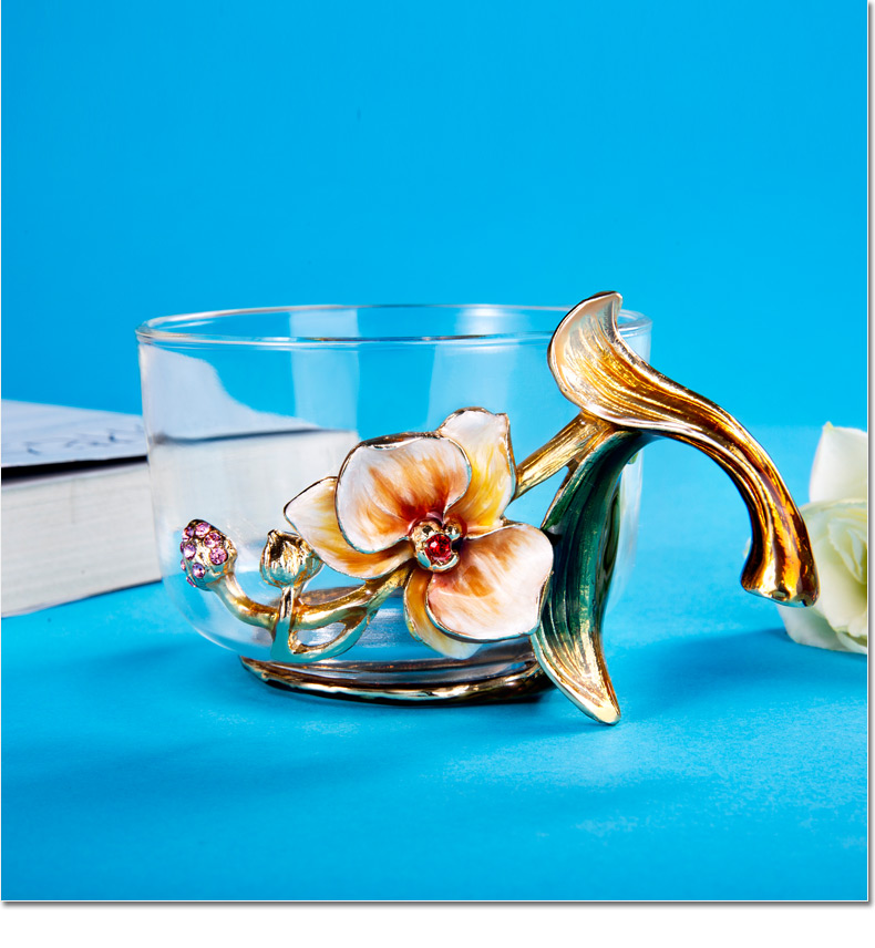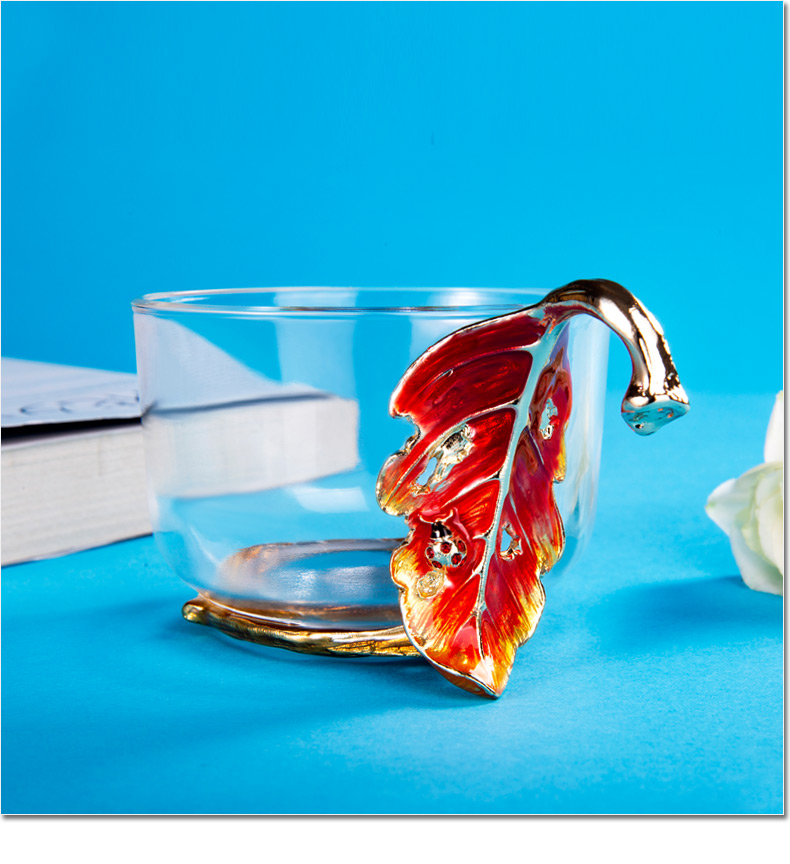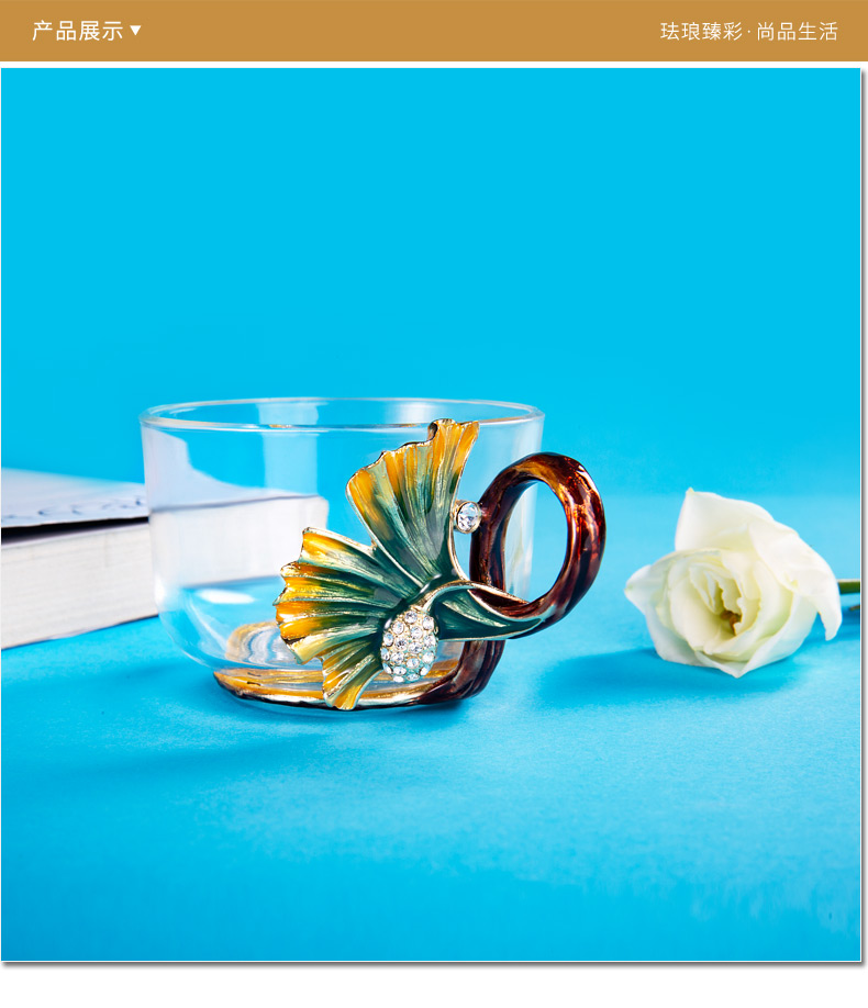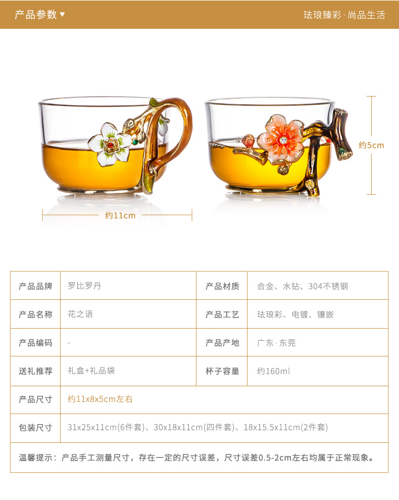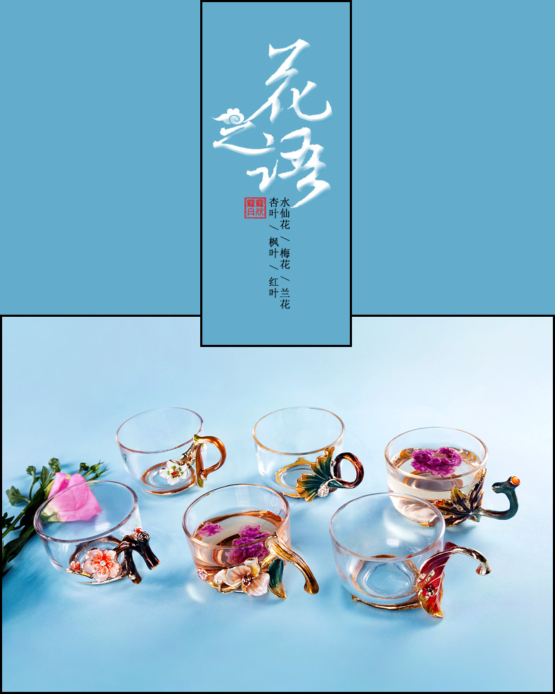 罗比罗丹 玻璃功夫茶具六件套 创意珐琅彩品茗杯小茶杯带把杯 R-33501J