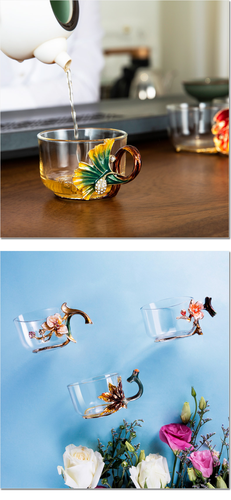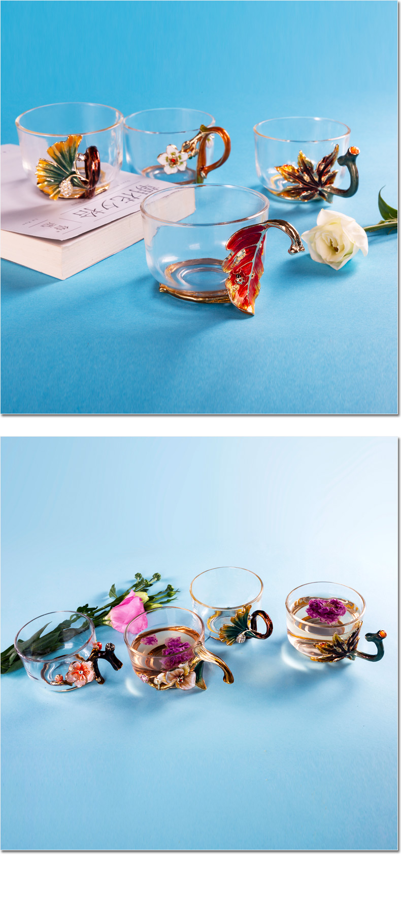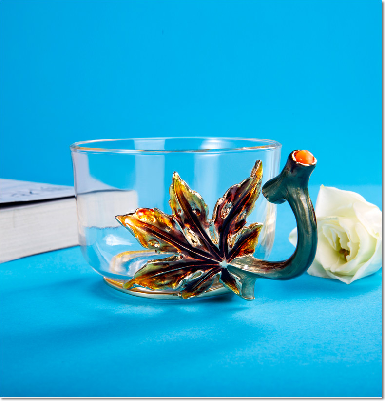 罗比罗丹 玻璃功夫茶具六件套 创意珐琅彩品茗杯小茶杯带把杯 R-33501J