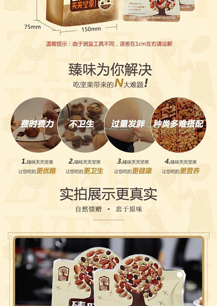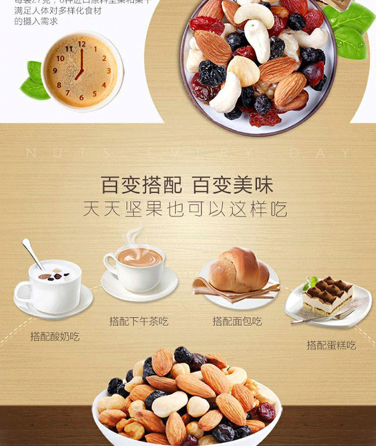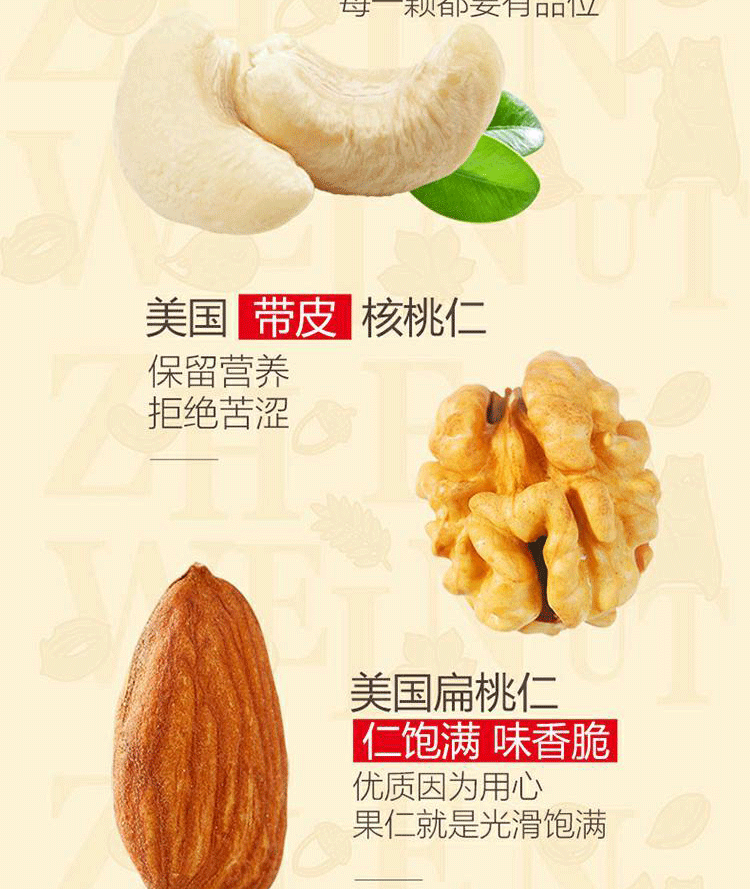 您所在的位置:首页 > 休闲食品  > 休闲食品 > 坚果炒货  > 臻味 每日坚果189g(27g*7包)天天坚果网红零食