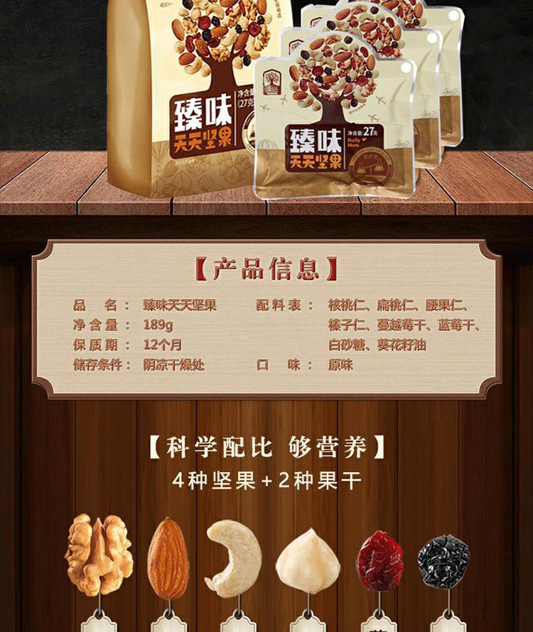 臻味 每日坚果189g(27g*7包)天天坚果网红零食