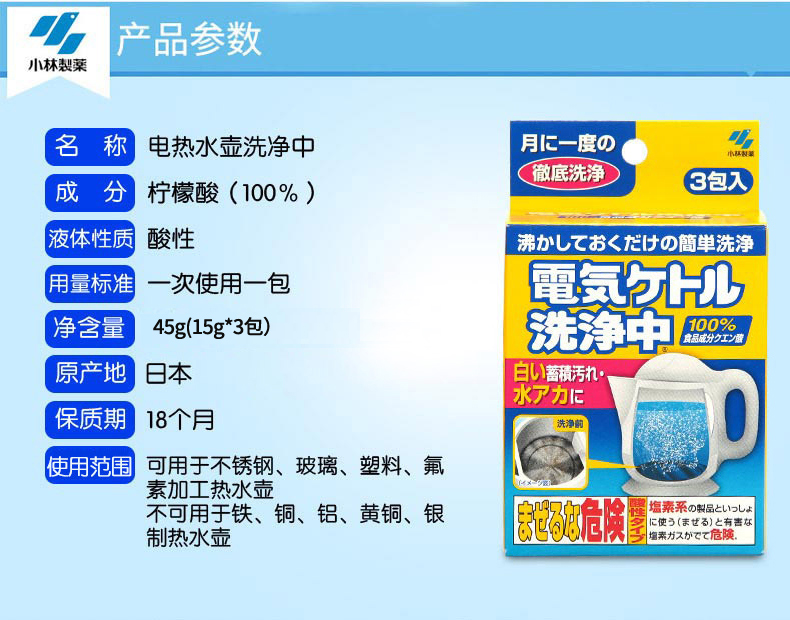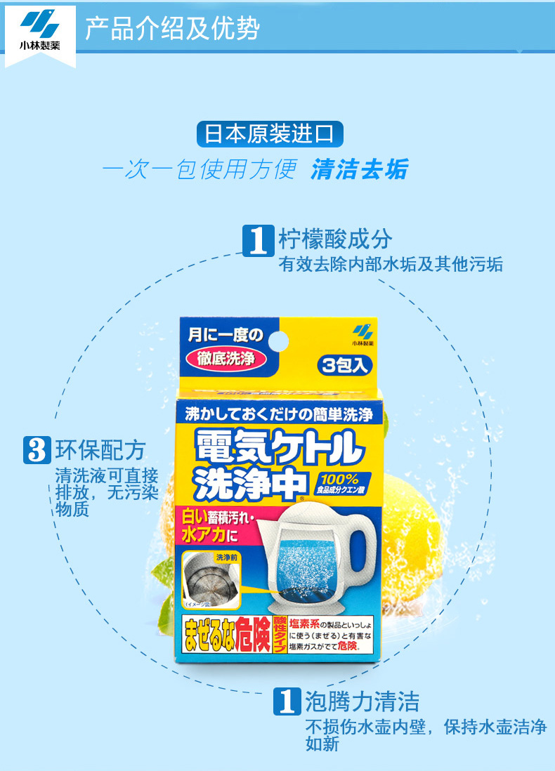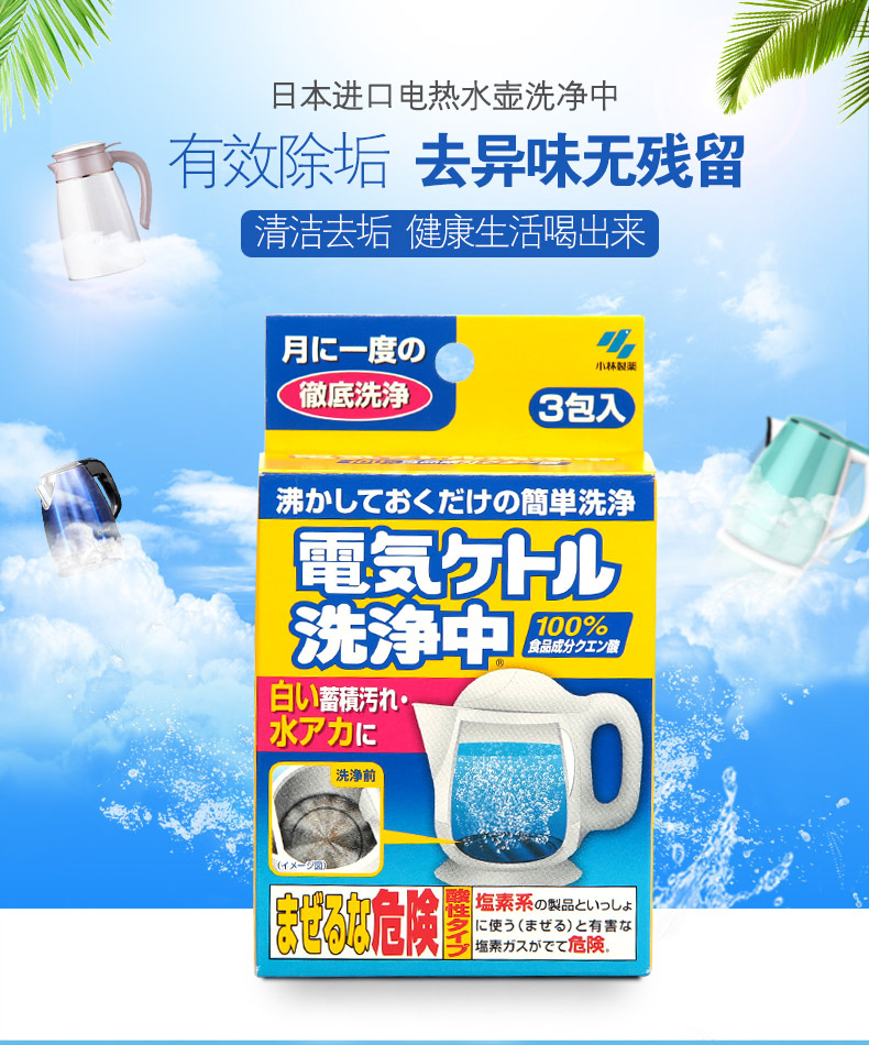 日本小林制药 电热水壶水瓶清洁片15g*3包