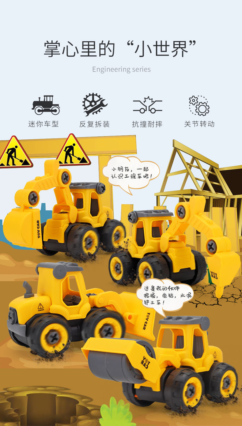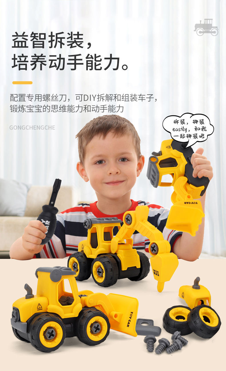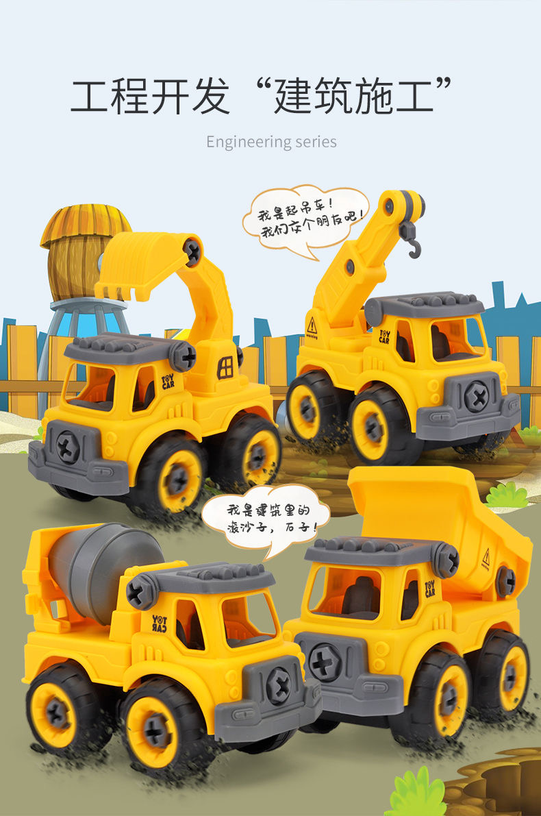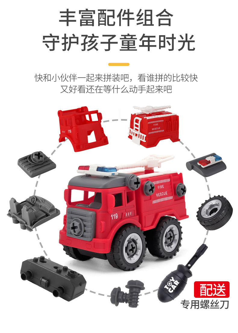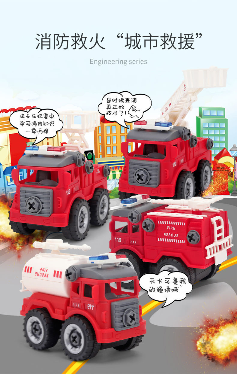 怀恩 儿童工程车可拆卸拧螺丝套装益智组装挖土机(工程系列-消防系列-军事系列)下单麻烦备注