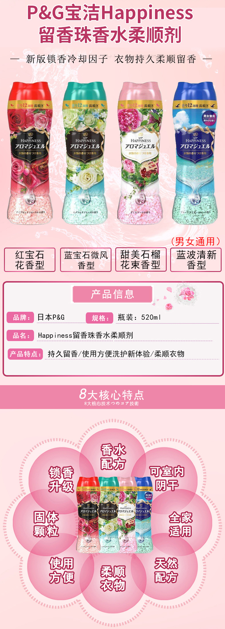 您所在的位置:首页 > 家庭清洁  > 衣物清洁 > 护理剂  > 日本宝洁衣物柔顺颗粒固体芳香除臭留香珠520ml 绿色清新森林香型