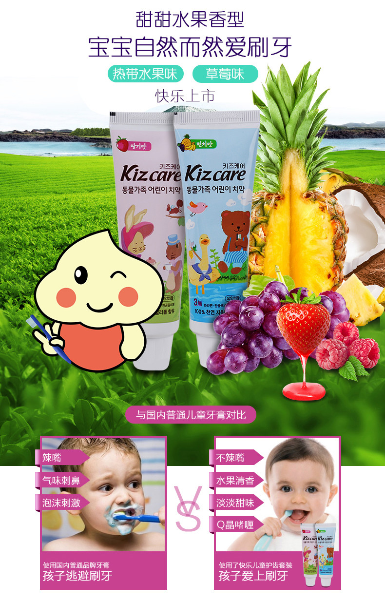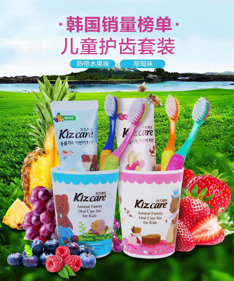 韩国芜琼花快乐儿童草莓味牙膏75g(套装)
