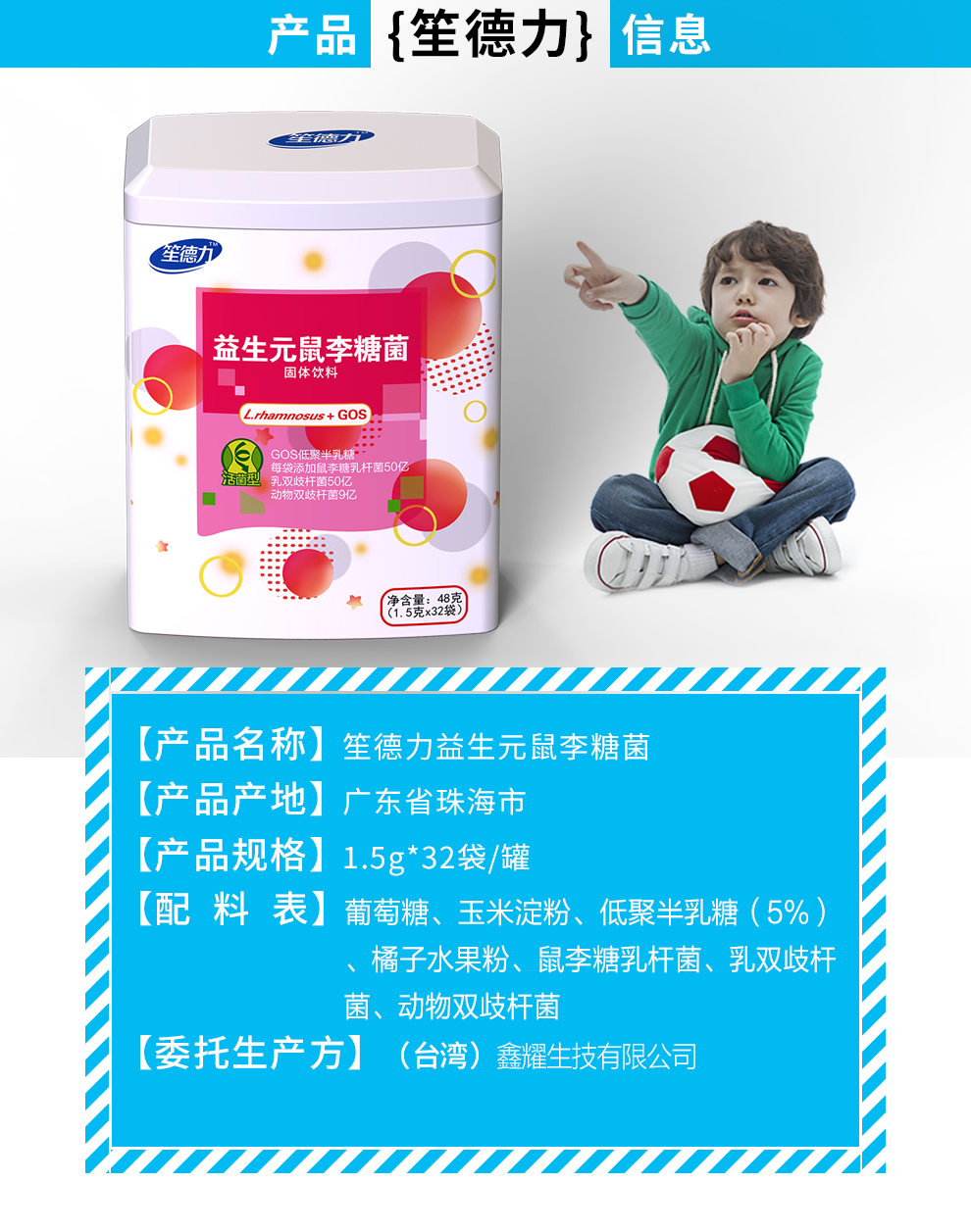 台湾进口原料笙德力鼠李糖菌宝宝儿童益生菌BB-12 LGG 48g