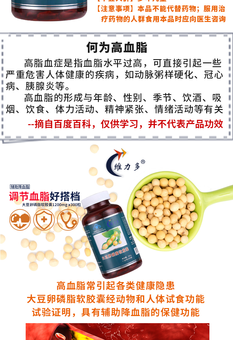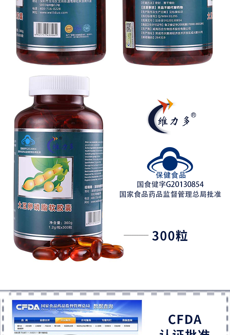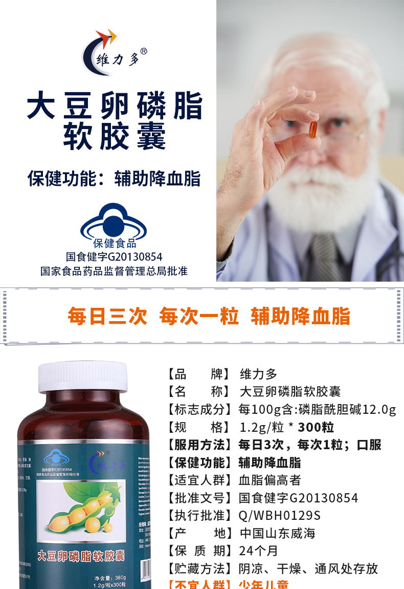 【授权商品】维力多大豆卵磷脂软胶囊 辅助降血脂300粒*1200mg