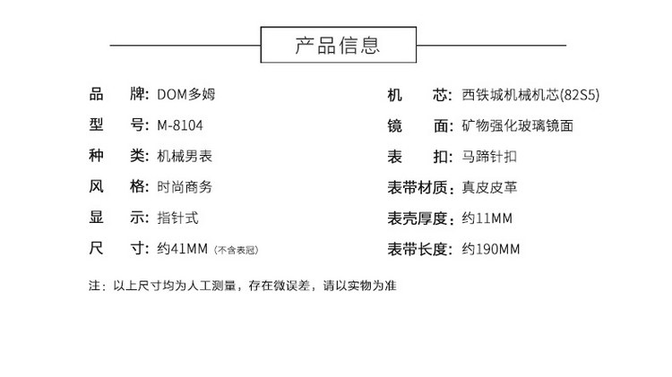 您所在的位置:首页 > 服饰箱包  > 饰品/手表 > 机械表  > 多姆(DOM)手表男全自动镂空机械表男表M-8104GL-7M棕色