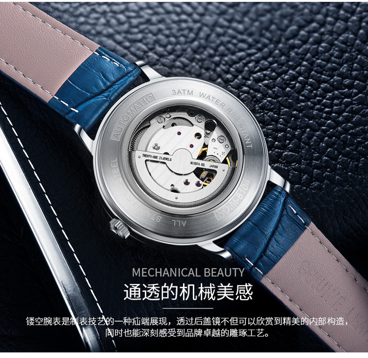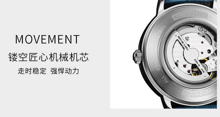 多姆(DOM)手表男全自动镂空机械表男表M-8104GL-7M棕色