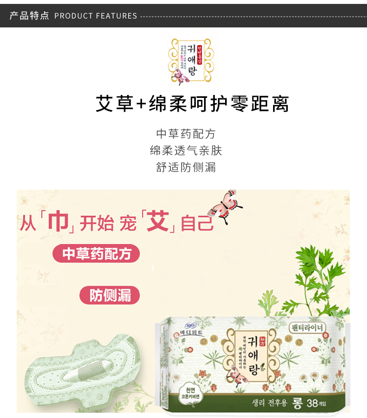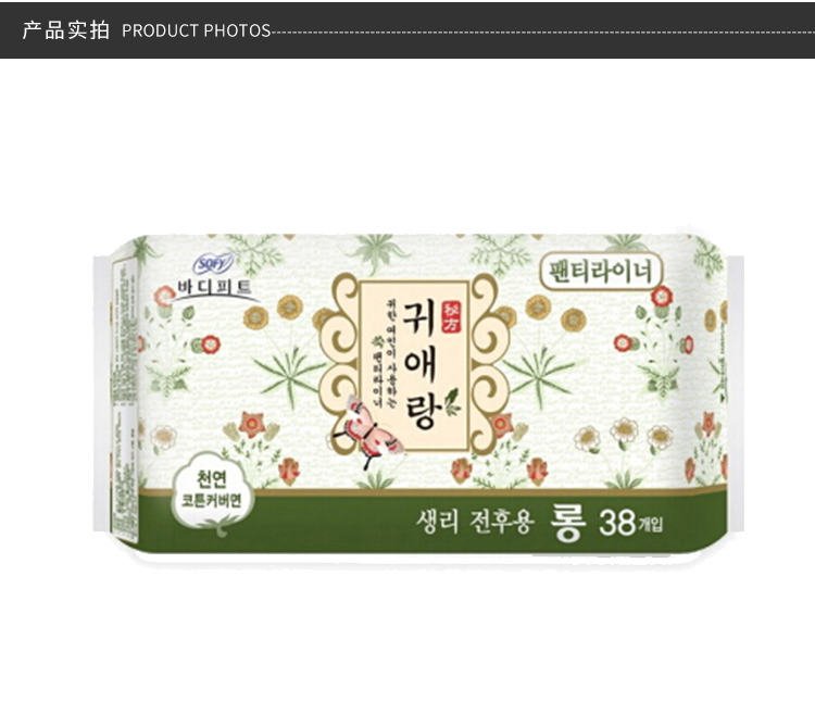 韩国贵爱娘中草药无荧光剂护垫 17.5cm38片