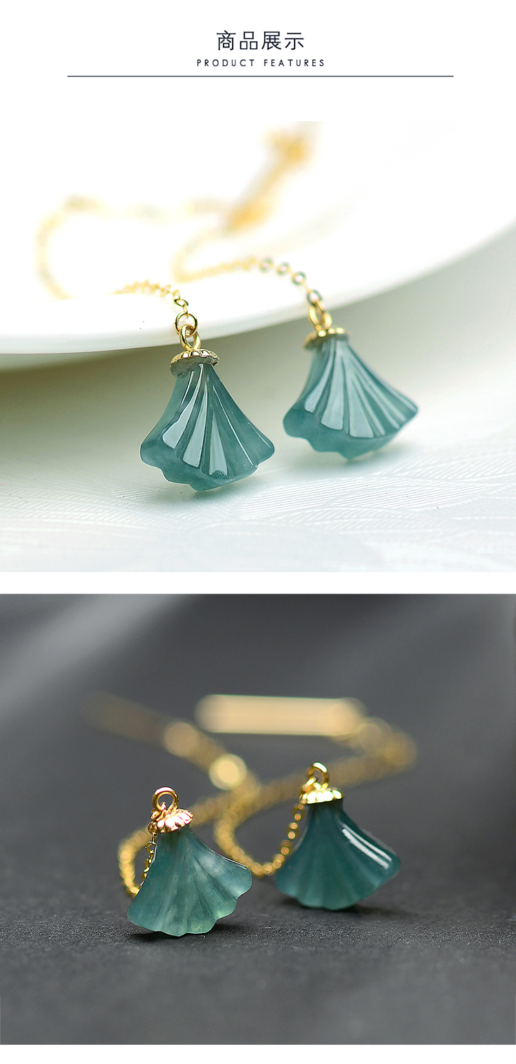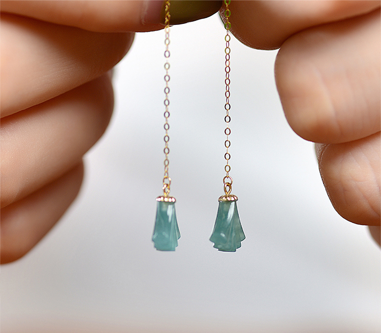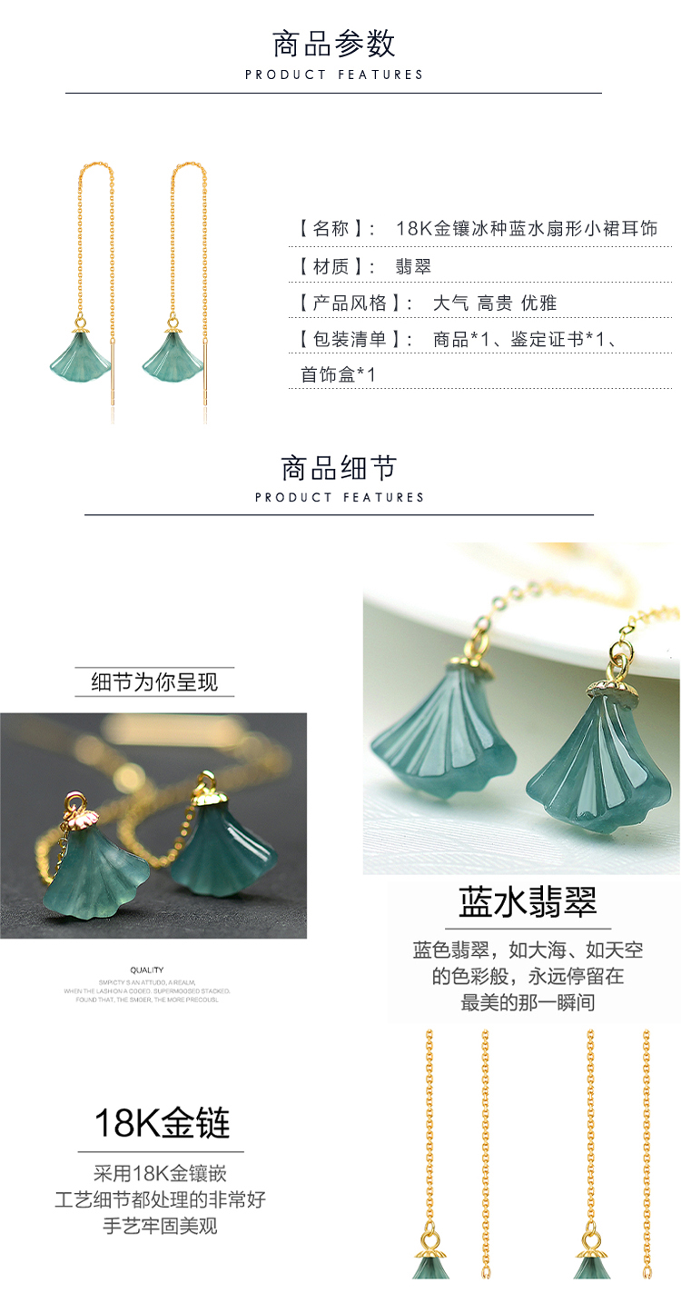 翠雅金楼18K金镶天然冰种蓝水飘雪花棉扇形小裙子翡翠耳饰玉耳饰