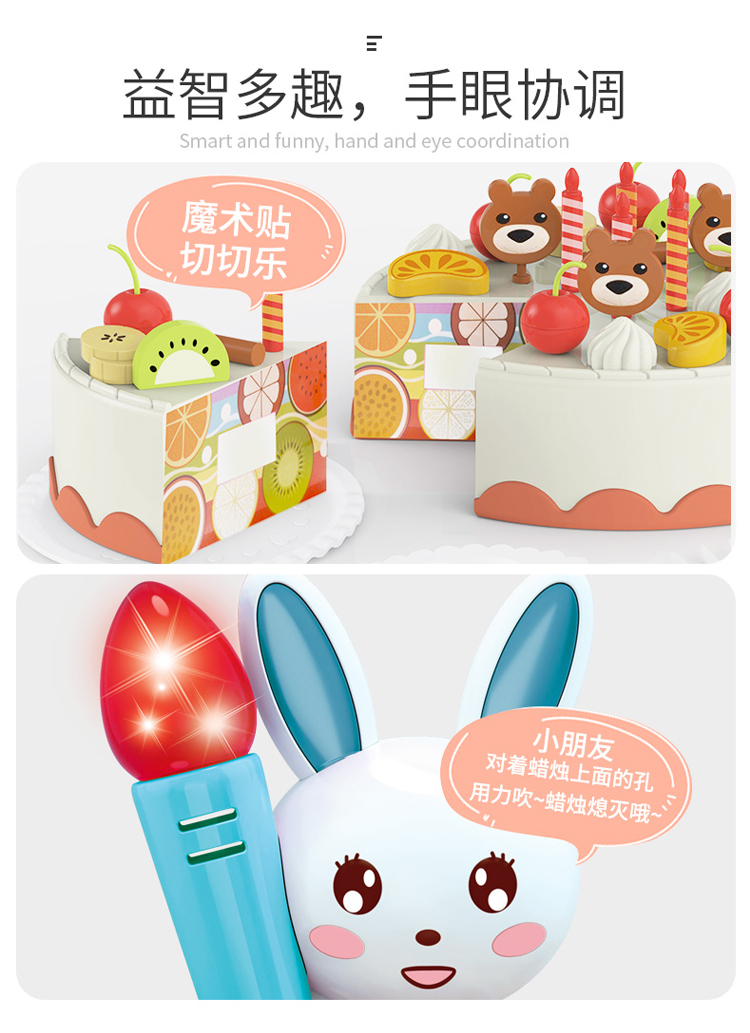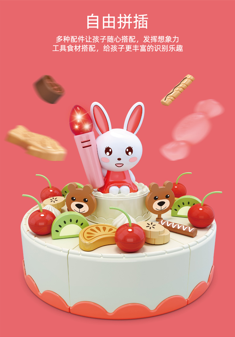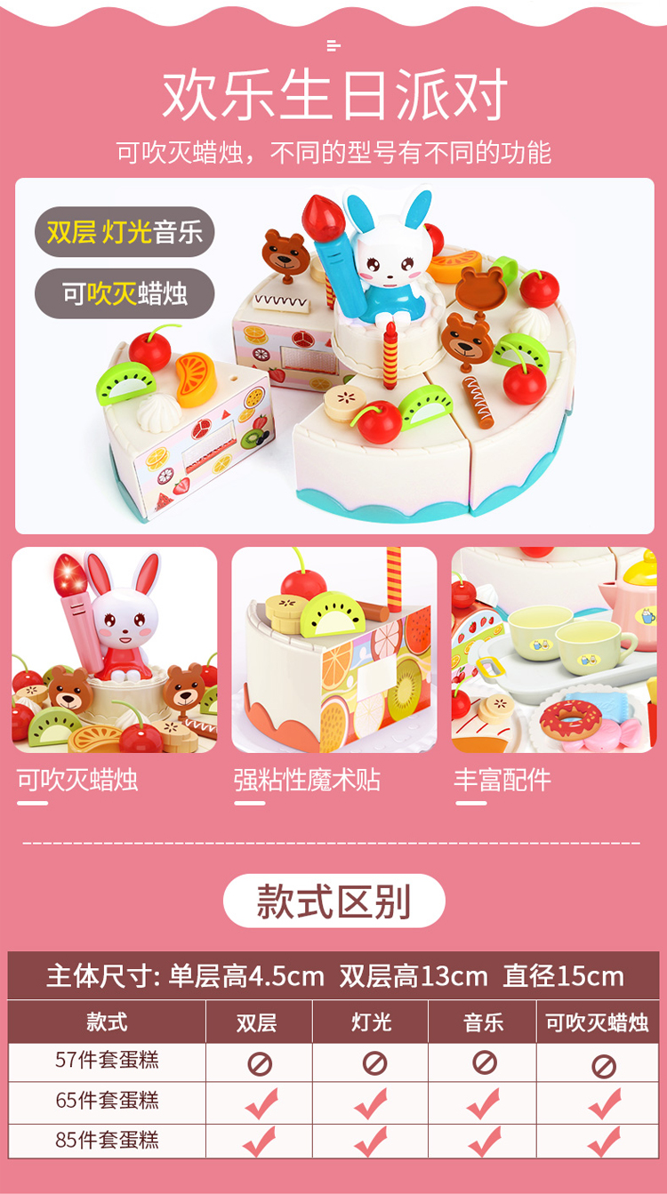 怀恩 可切生日蛋糕水果蔬菜玩具儿童套装组合切切乐女孩男孩过家家厨房 会发光 会唱歌的蛋糕 蓝色(85件套)