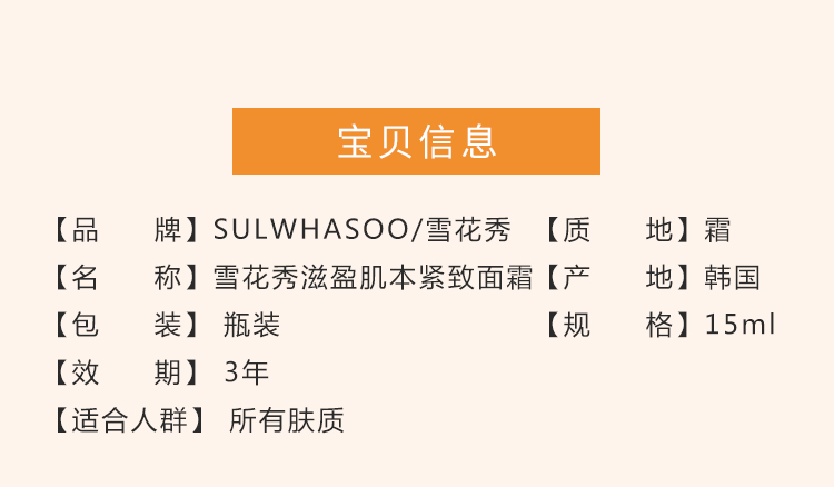 韩国Sulwhasoo雪花秀 弹力面霜 15ml 中样 新旧版本随机发