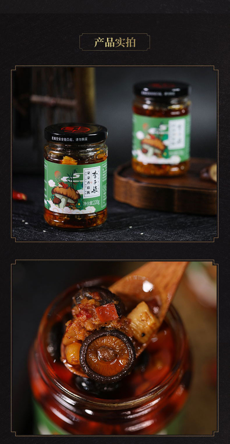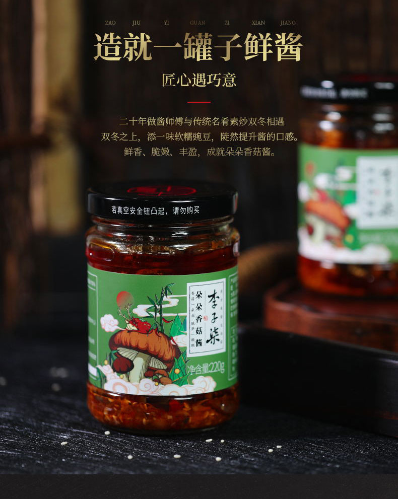 您所在的位置:首页 > 休闲食品  > 粮油调味 > 调味品  > 李子柒 朵朵香菇酱220g*2瓶 冬笋辣椒酱拌下饭香辣拌面蘸调料酱