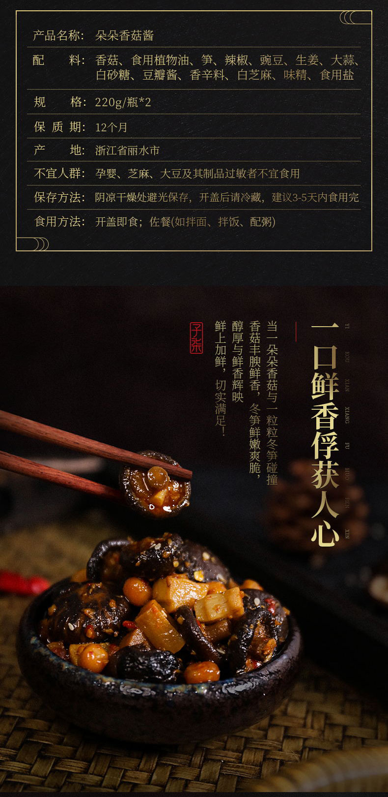 李子柒 朵朵香菇酱220g*2瓶 冬笋辣椒酱拌下饭香辣拌面蘸调料酱