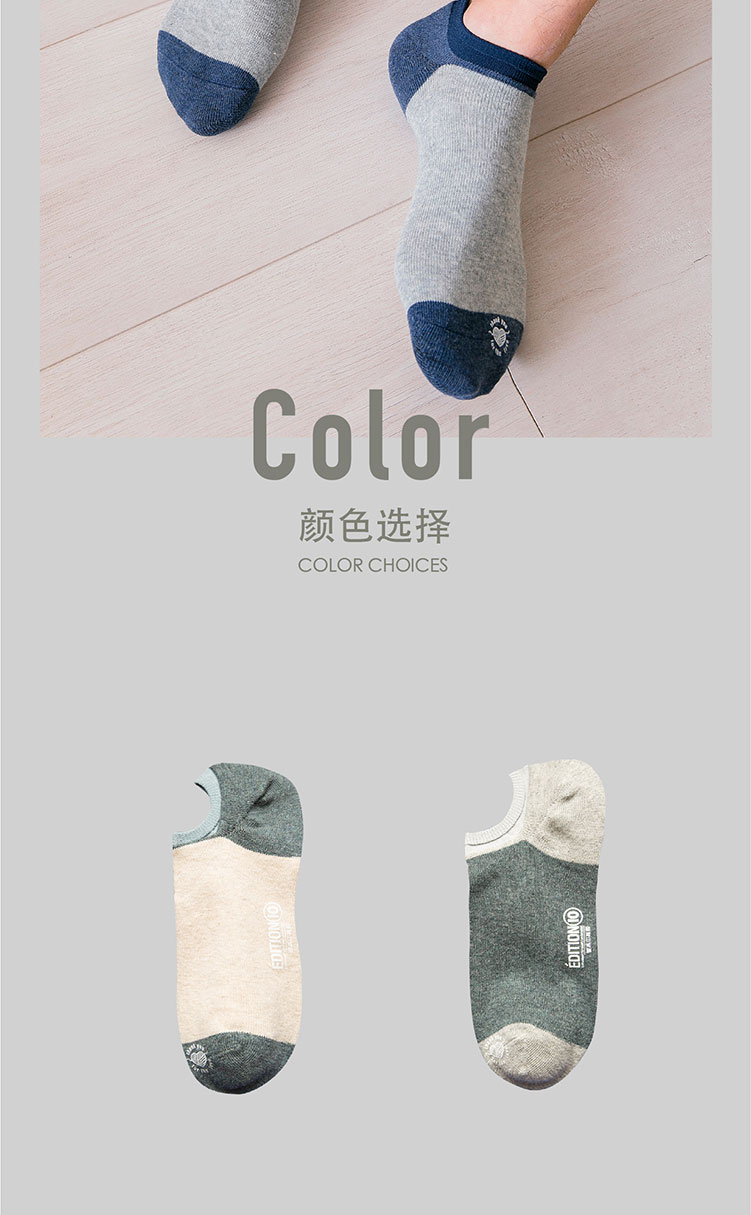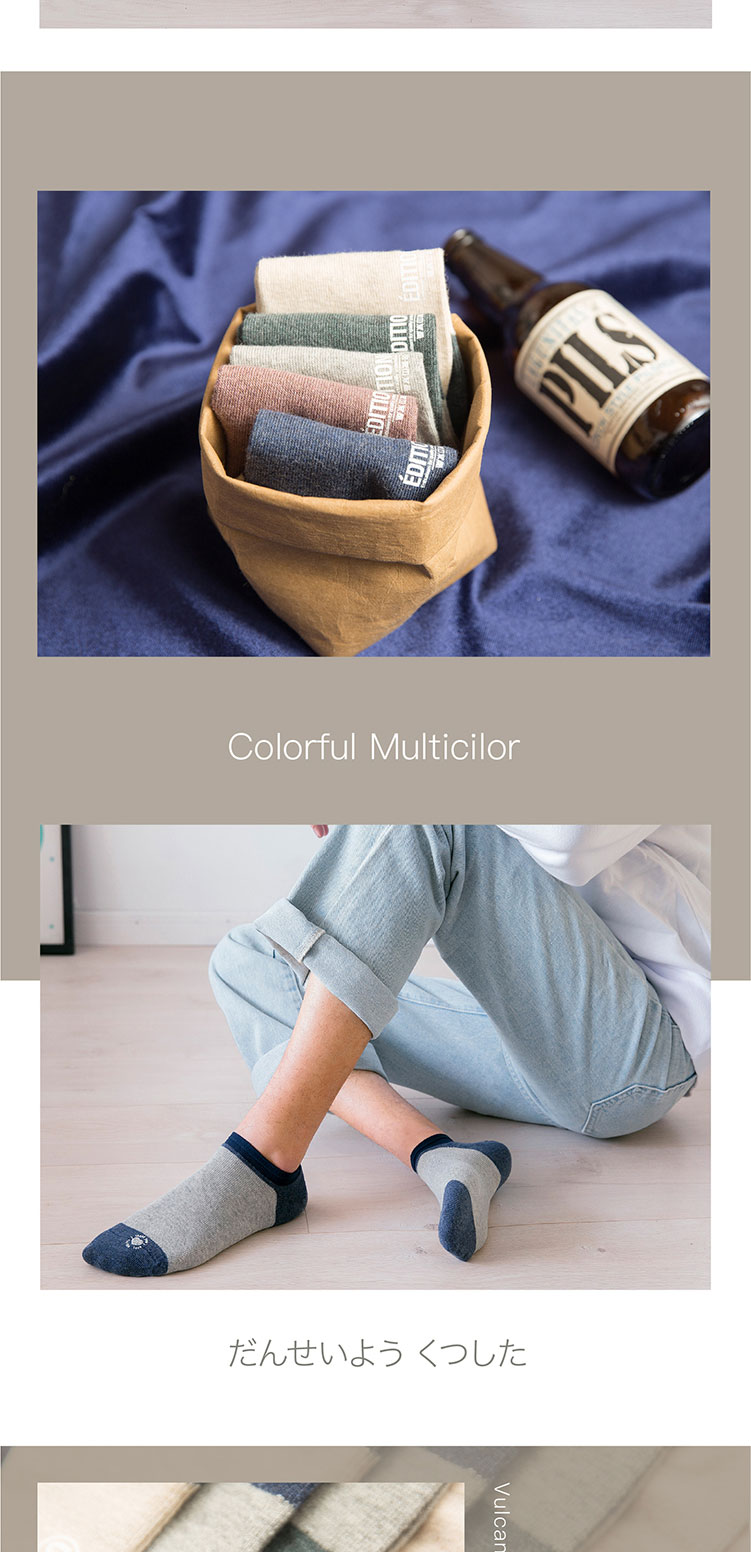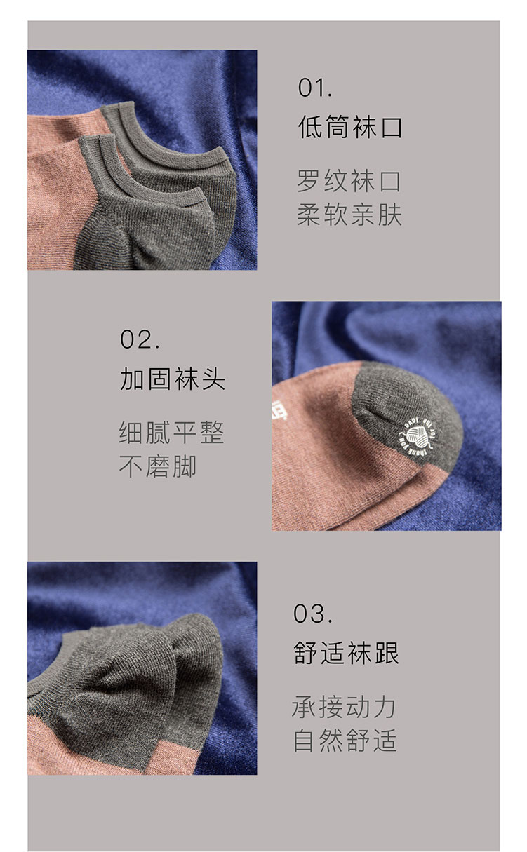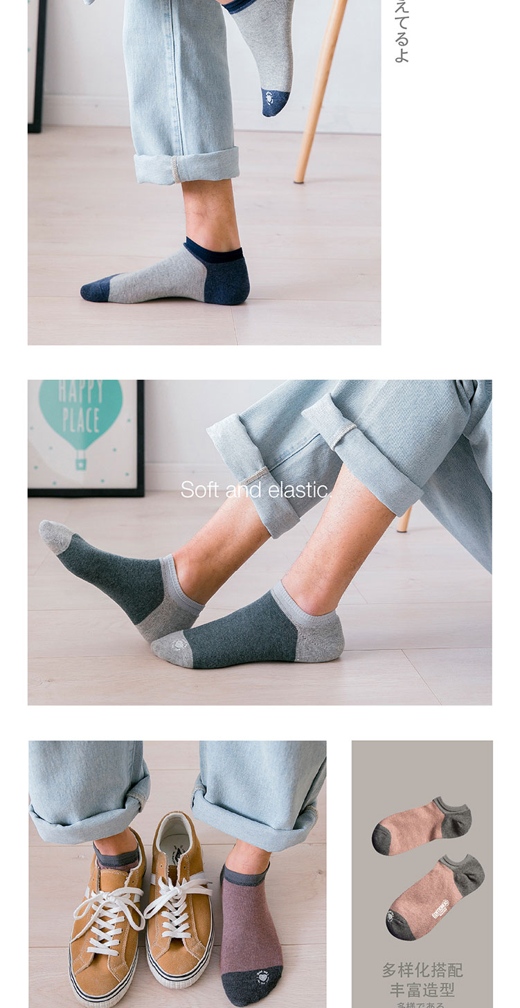 猫人Miiow袜子男5双色纺橡筋罗口学生船袜 8228