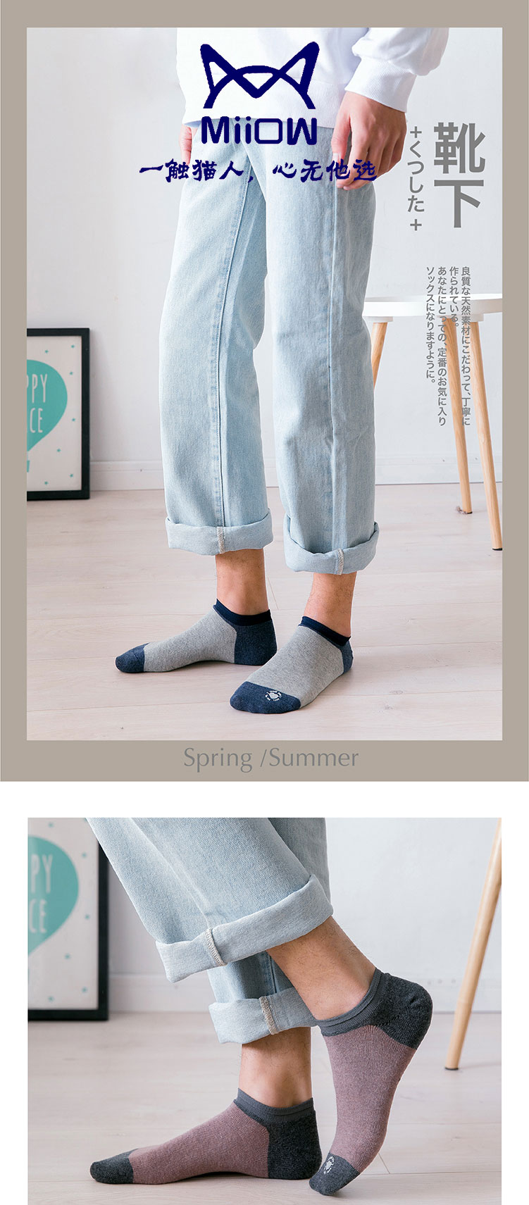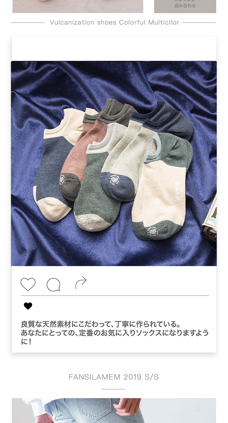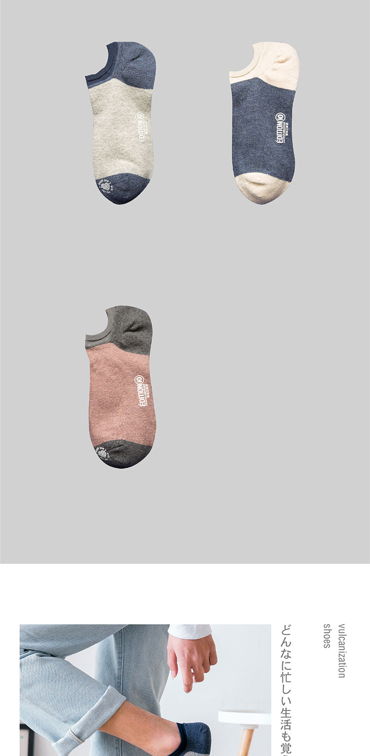 猫人Miiow袜子男5双色纺橡筋罗口学生船袜 8228