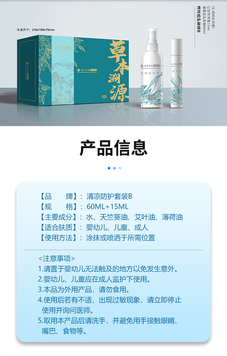 云南白药携爽清凉防护套装(B)套盒叮咬消消棒(15ml)+防叮喷雾(60ml)YYQ-801驱蚊防蚊