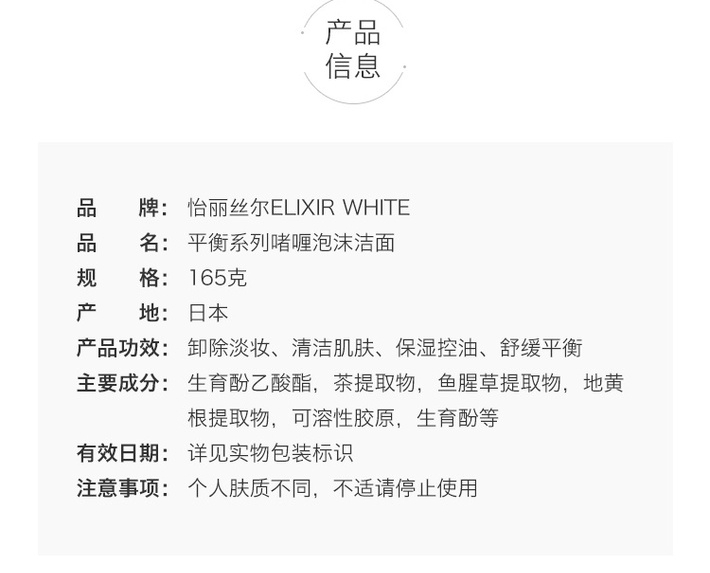 您所在的位置:首页 > 美妆护肤  > 面部护肤 > 防晒  > 日本ELIXIR/怡丽丝尔 水油平衡泡沫洁面