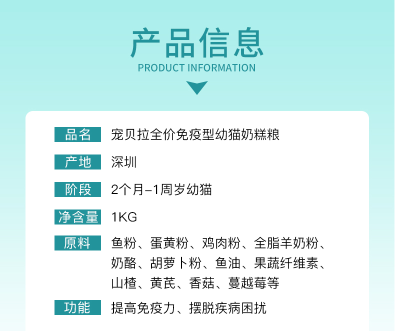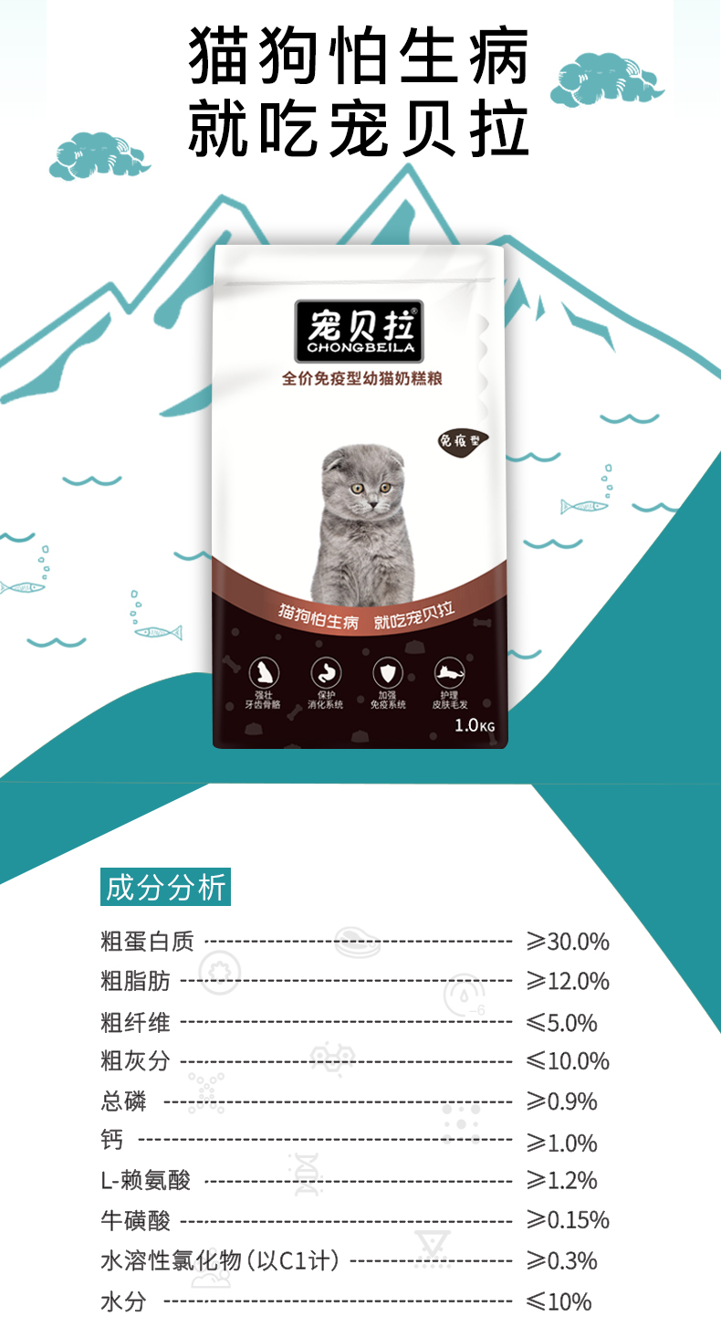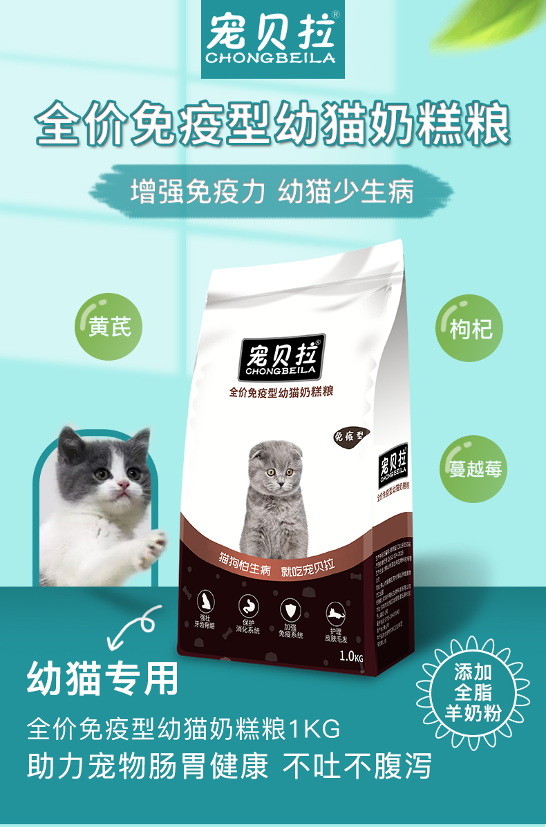 幼猫粮宠贝拉1.0g全价免疫型幼猫奶糕粮