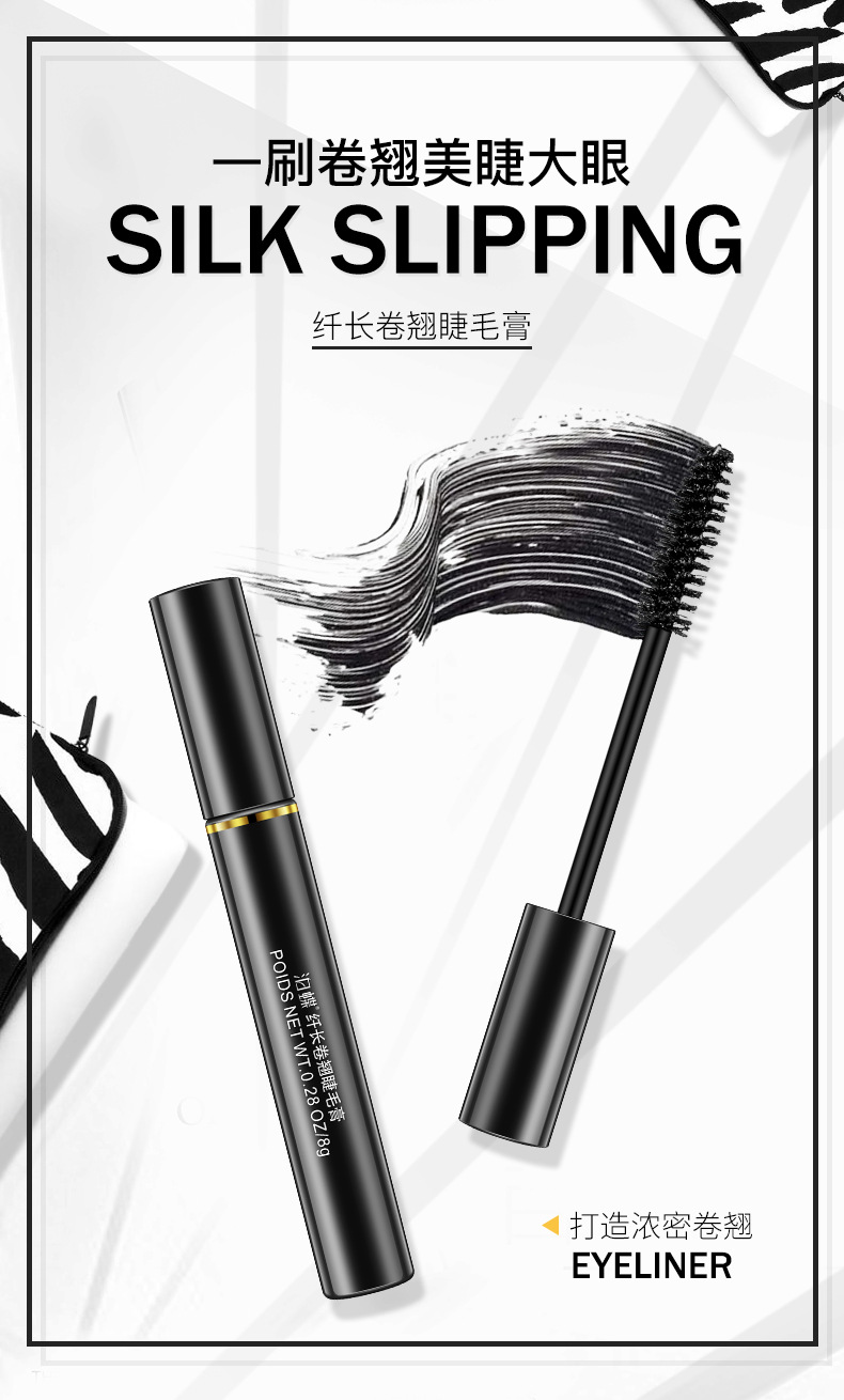 泊蝶网红睫毛膏防水纤长卷翘不晕染女泰国浓密小刷头加密加长正品8g