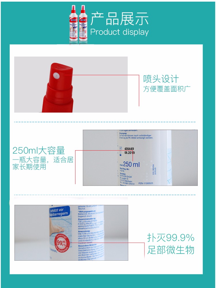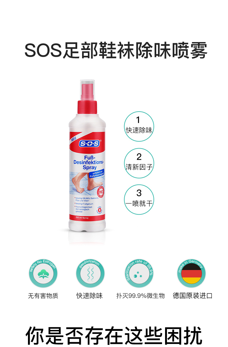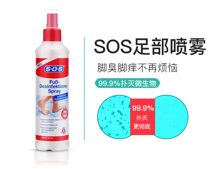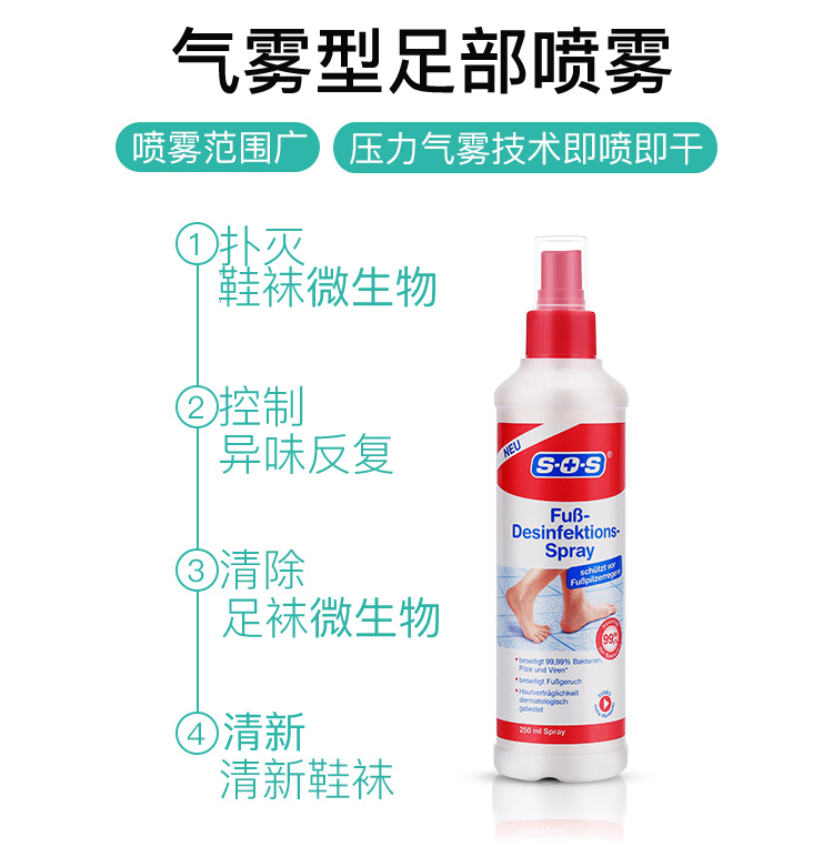 德国SOS鞋袜除臭剂去脚臭神器粉除臭脚汗去除脚臭鞋子去异味250ml