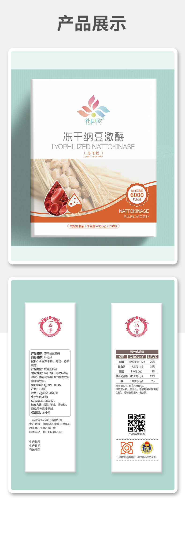 北京一品堂补必欣冻干纳豆激酶2g*20袋40g