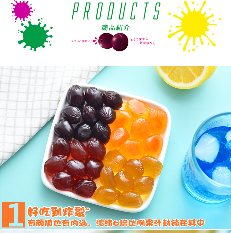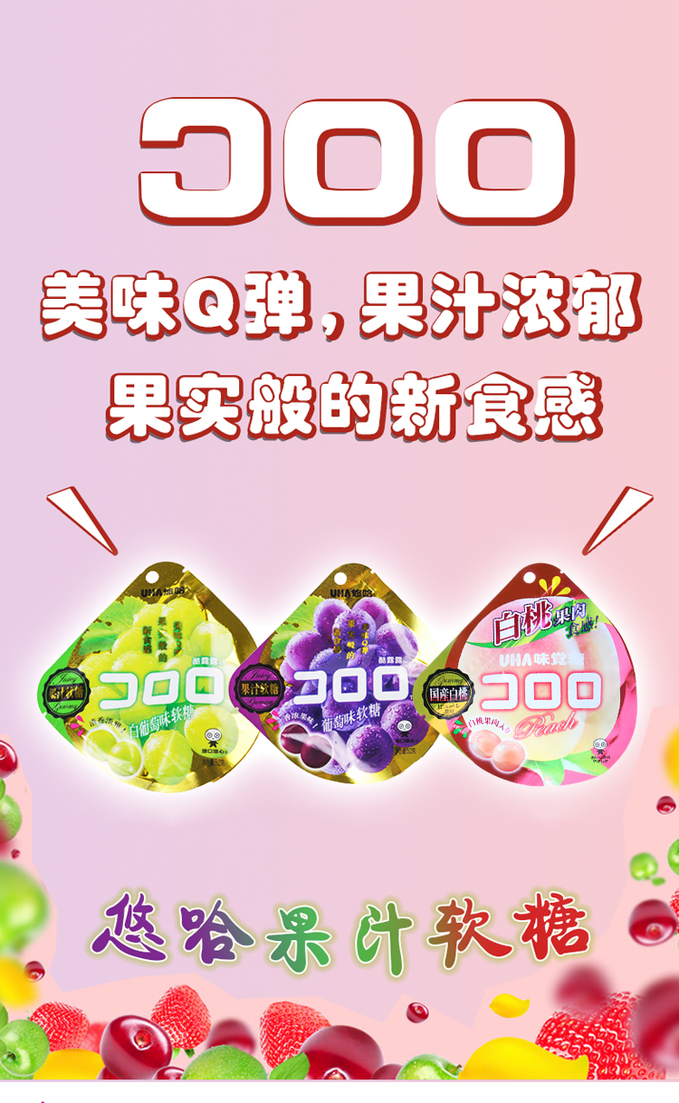 日本 悠哈UHA糖 紫葡萄/青提子/白桃果汁软糖三种口味组合