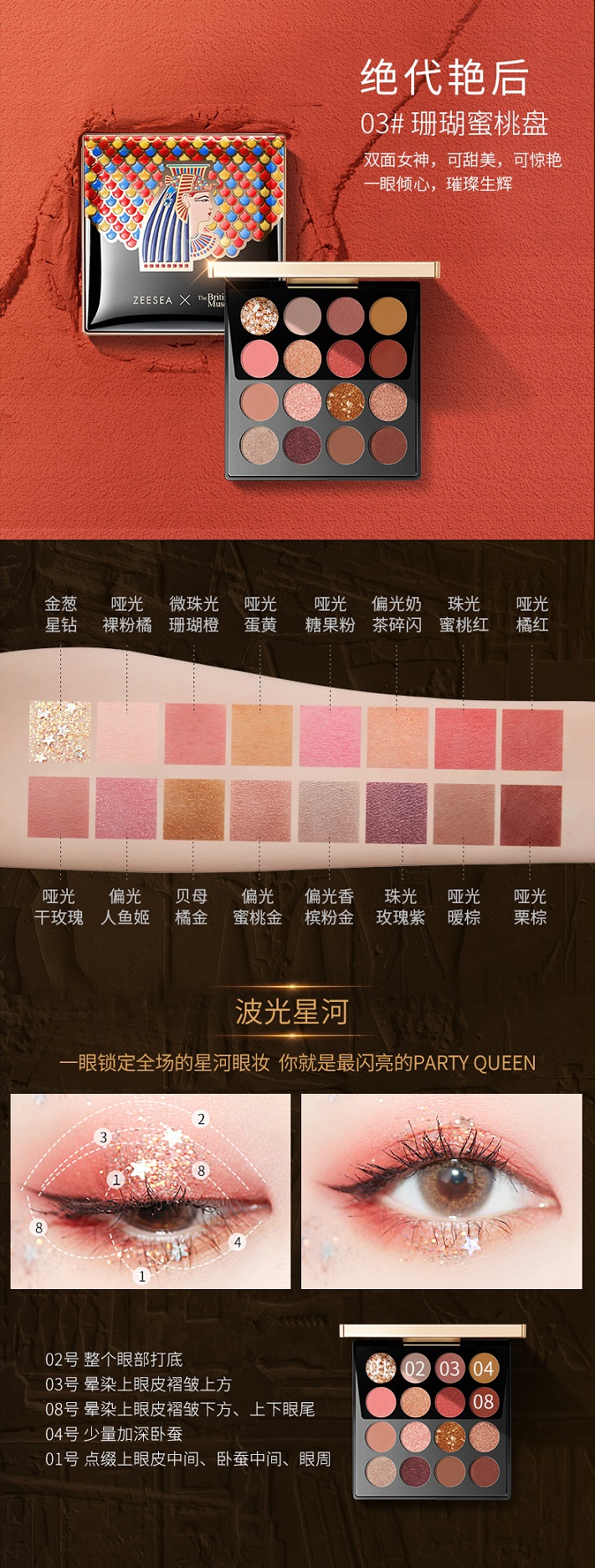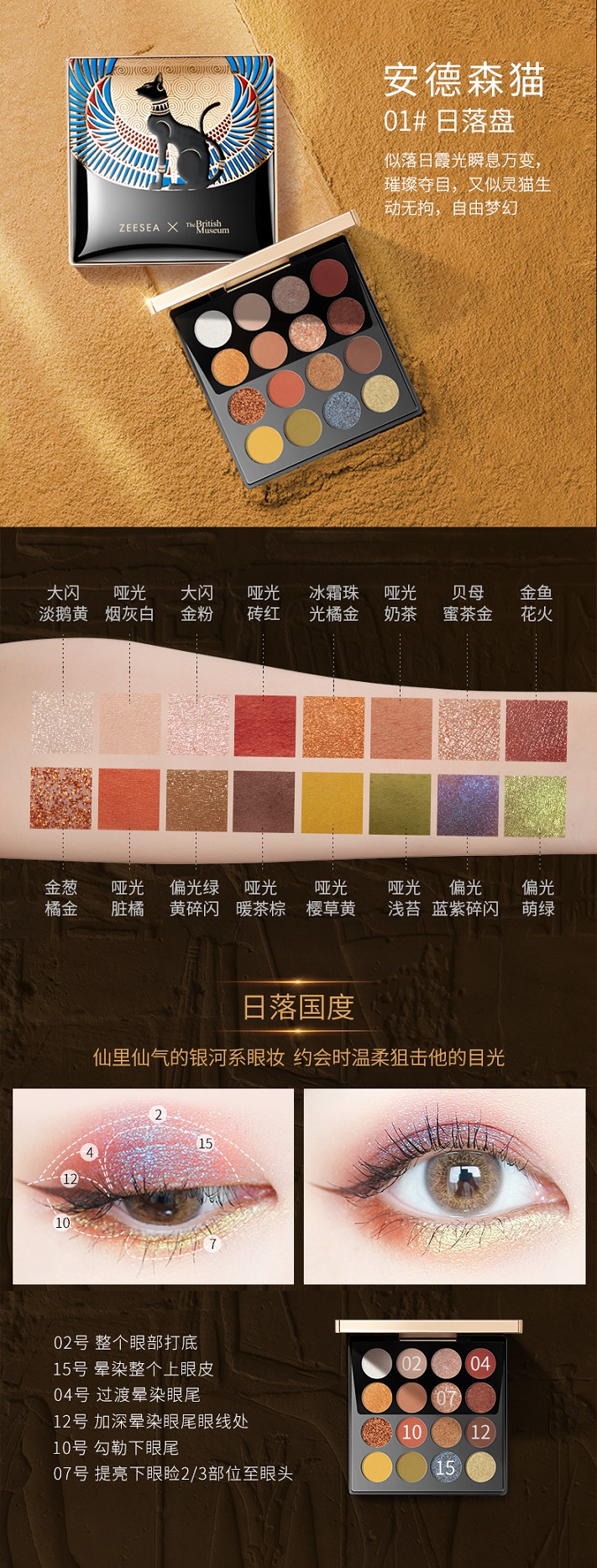 ZEESEA滋色埃及眼影盘16色 安德森猫眼影闪粉珠光埃及艳后彩妆盘 03