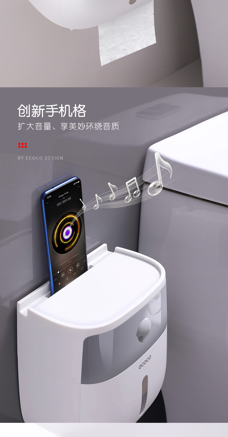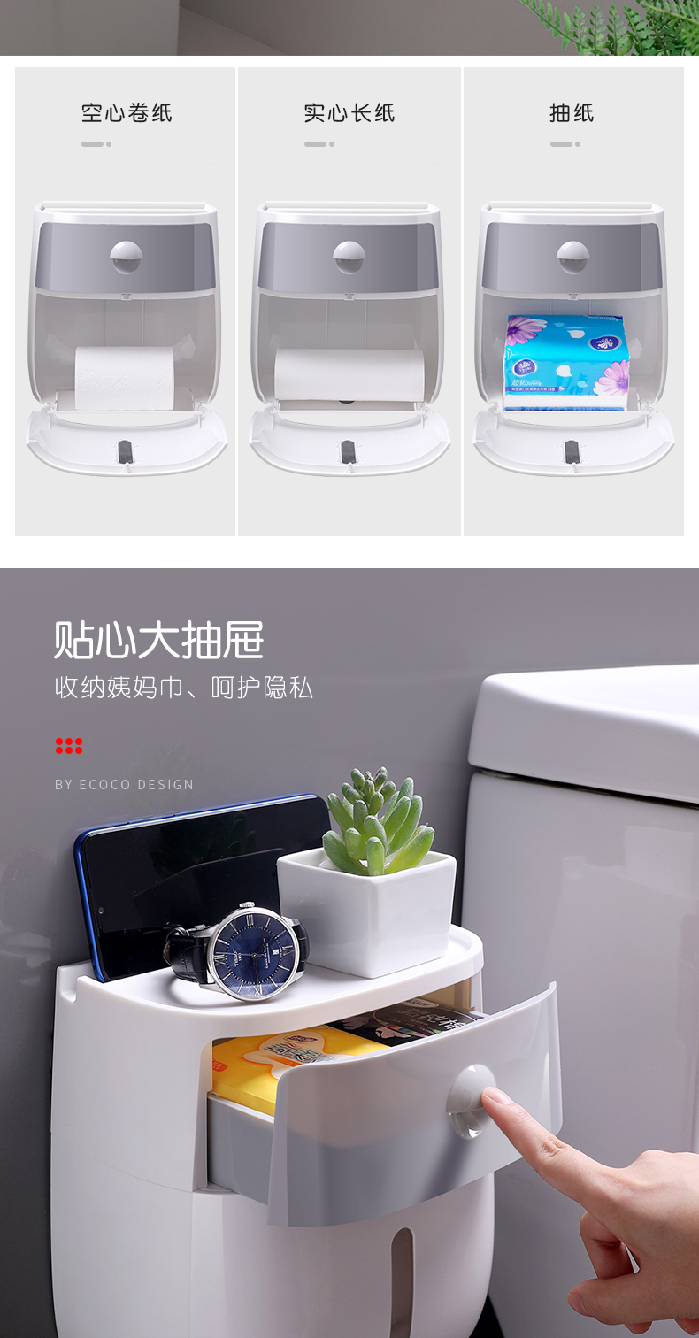 ecoco/意可可 卫生纸盒卫生间纸巾置物架厕所家用免打孔挂壁式创意抽纸盒卷纸筒 灰色