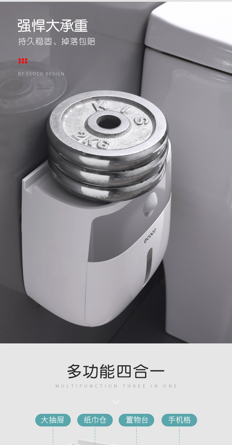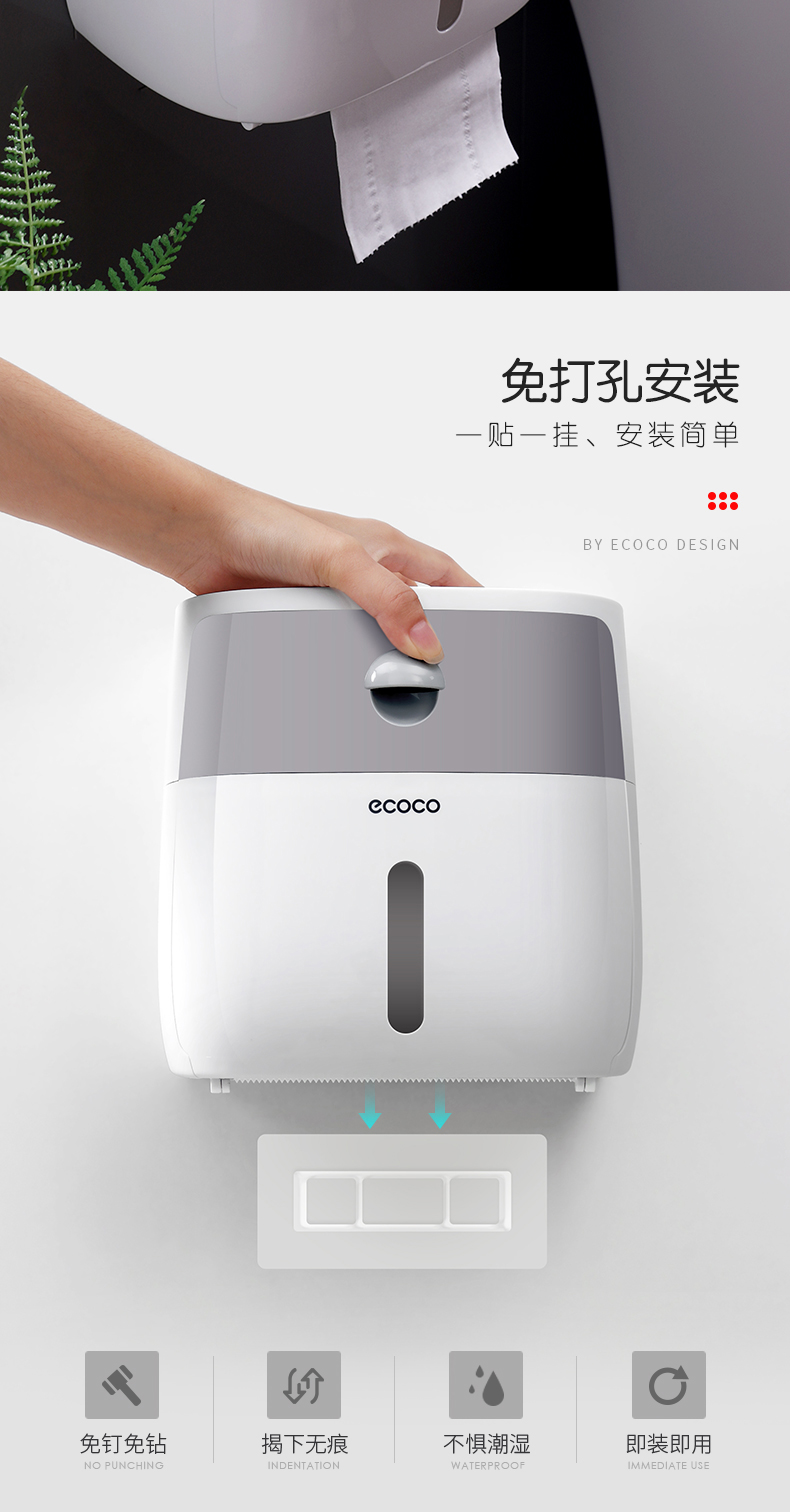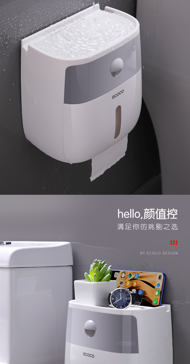 您所在的位置:首页 > 家居日用  > 收纳用品 > 收纳箱/盒  > ecoco/意可可 卫生纸盒卫生间纸巾置物架厕所家用免打孔挂壁式创意抽纸盒卷纸筒 灰色