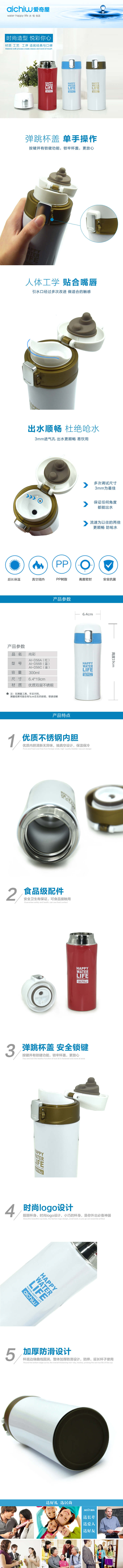 爱奇屋 304不锈钢保温杯 300ml 长效保温保冷 弹盖杯 尚彩