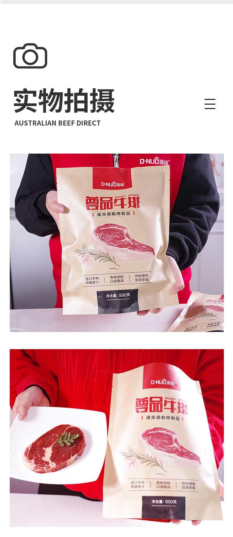 澳大利亚顶诺尊品牛排500g/包 【1000g套餐 2包装】100g*10片 送1刀叉 10酱包 1煎锅 全国顺丰冷运