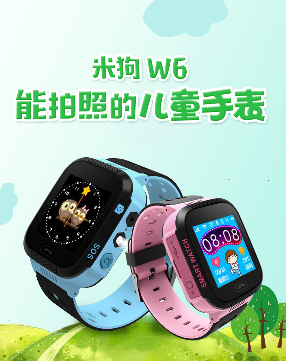 米狗儿童电话手表W6(粉色)