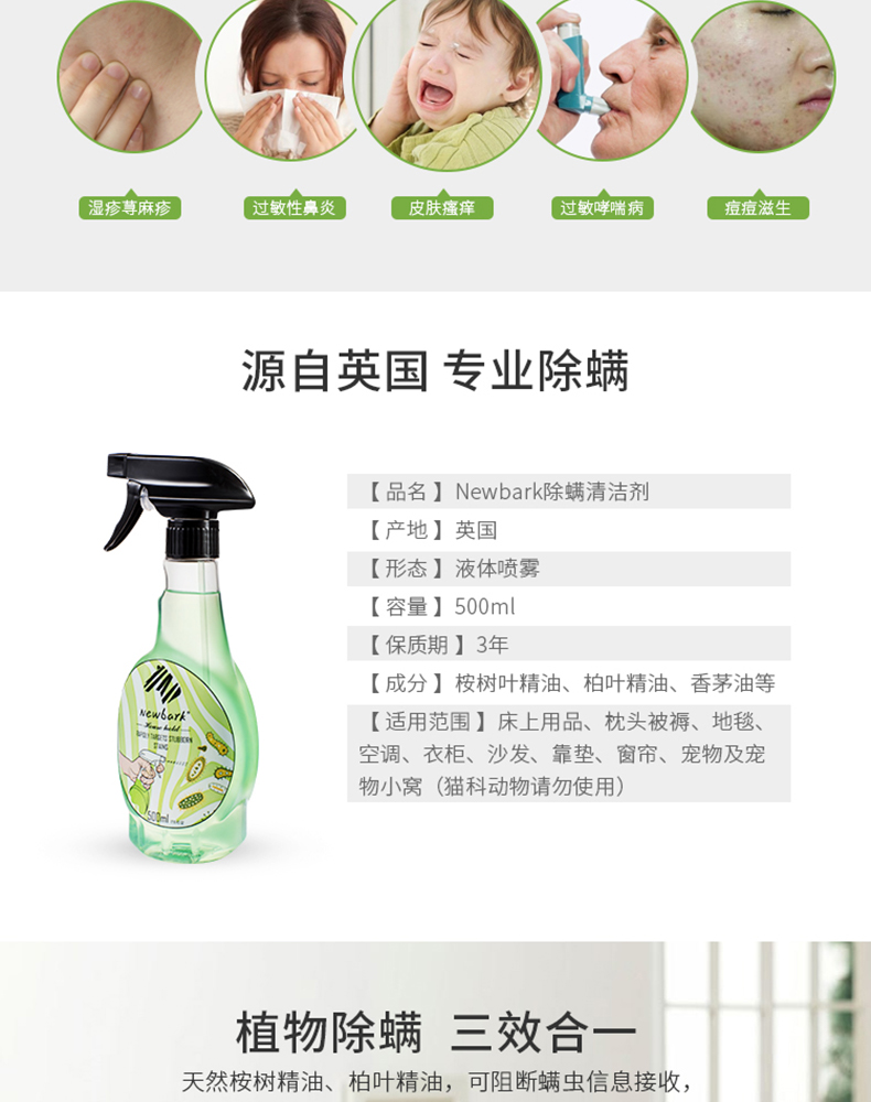 英国newbark除螨喷雾床上除螨虫喷雾剂杀菌去螨神器满虫净杀虫剂 500ml/瓶