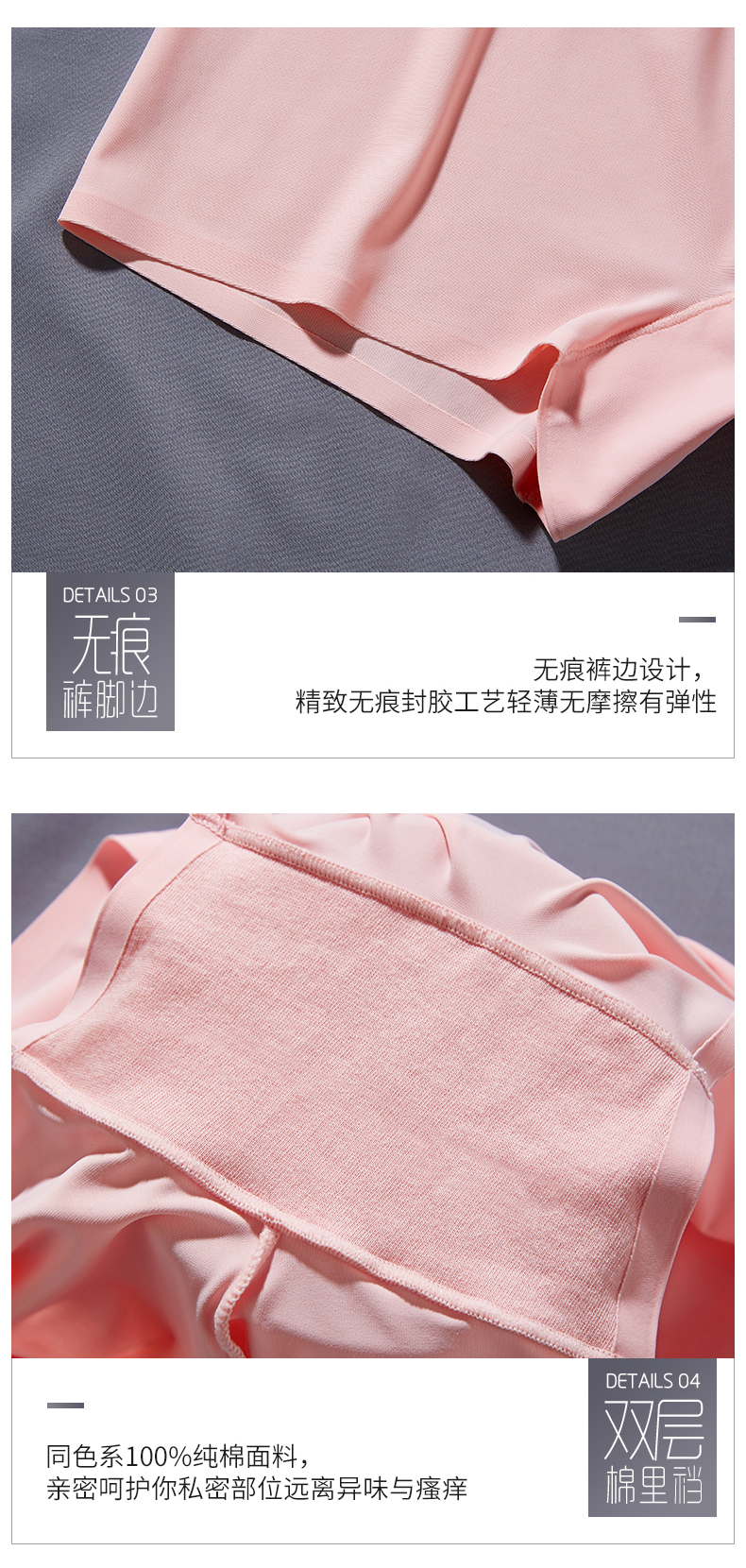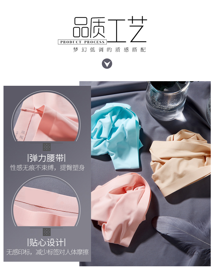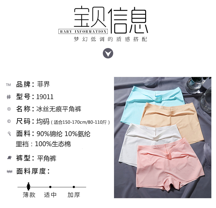 菲界 【3条装】冰丝无痕一片式小平角安全内裤隐形女士内裤19011