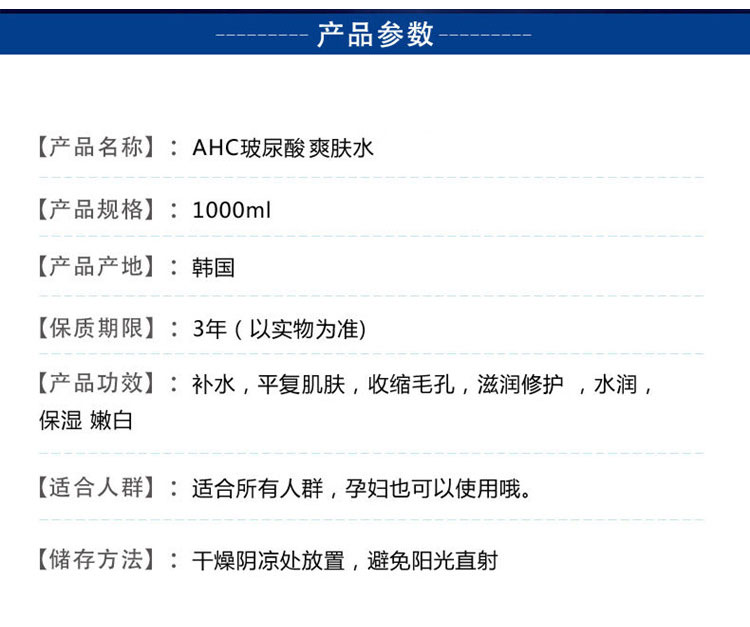 韩国直邮AHC神仙水大瓶透明质酸玻尿酸精华水爽肤水1000ml