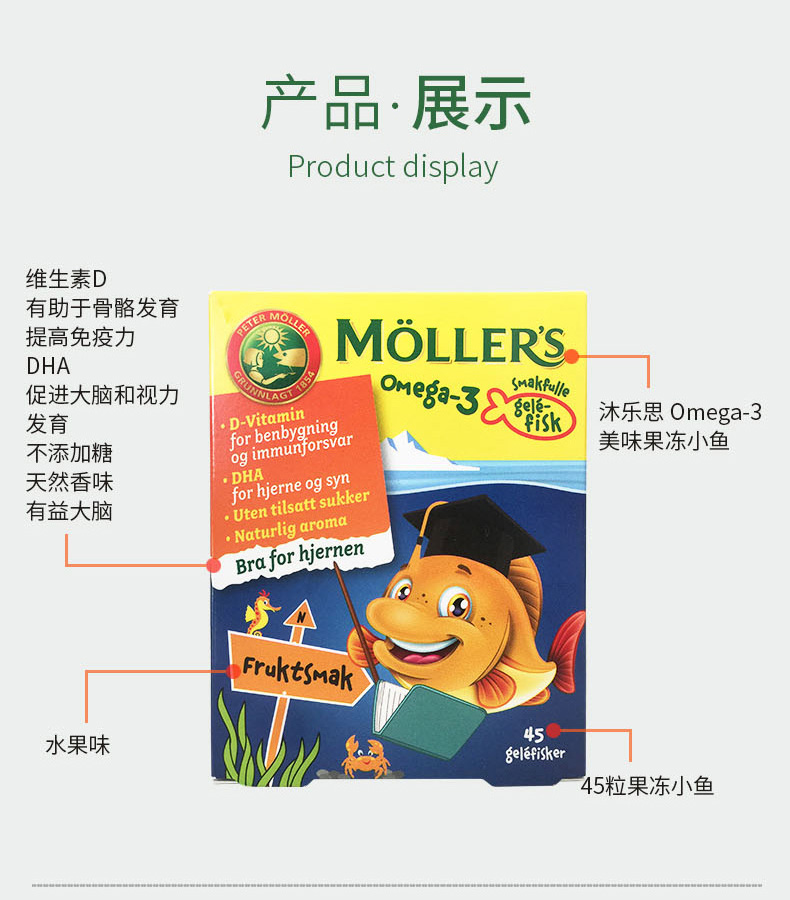 【授权商品】Mollers 沐乐思 果冻鳕鱼鱼油 水果味 45粒/盒