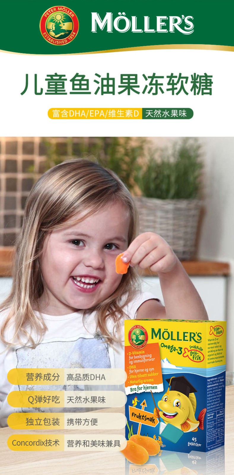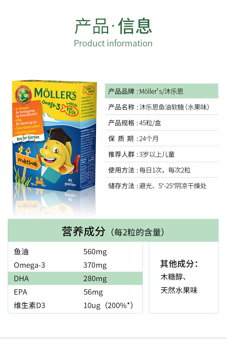 您所在的位置:首页 > 营养保健  > 营养成分 > 鱼油/磷脂  > 【授权商品】Mollers 沐乐思 果冻鳕鱼鱼油 水果味 45粒/盒