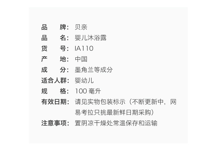 日本贝亲Pigeon贝亲婴儿沐浴露100ML IA110