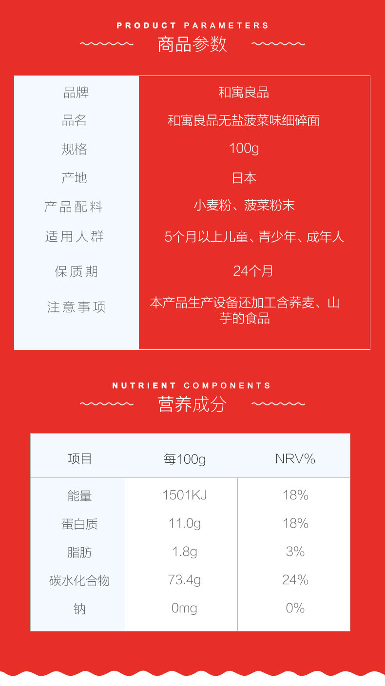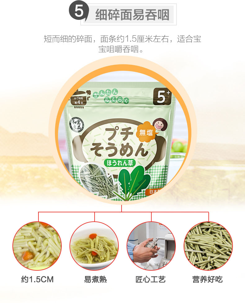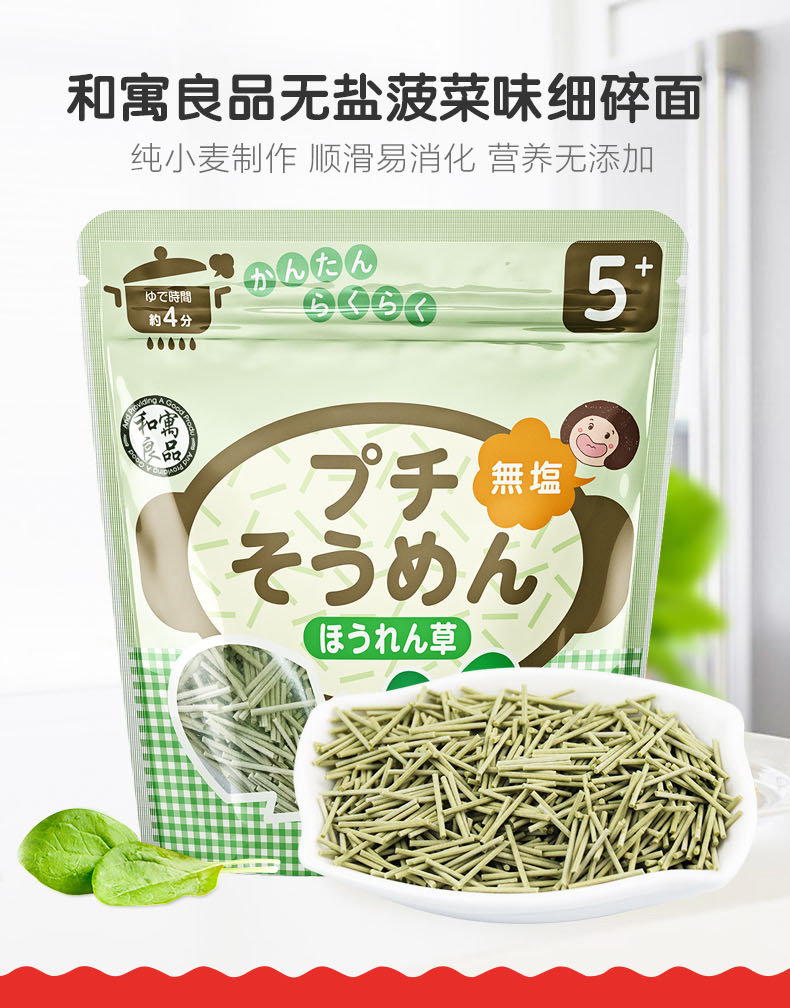 您所在的位置:首页 > 母婴用品  > 营养辅食 > 面条/粥  > 日本进口和寓良品细碎面无盐无添加婴儿辅食宝宝面条100g(菠菜味)