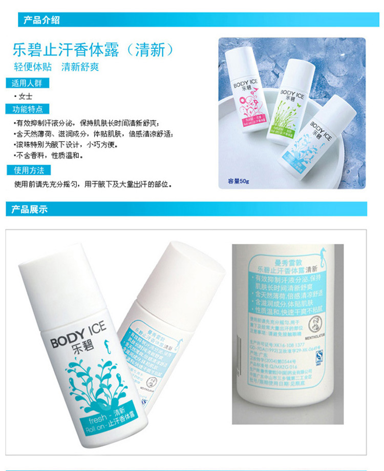 乐碧止汗香体露清新50g