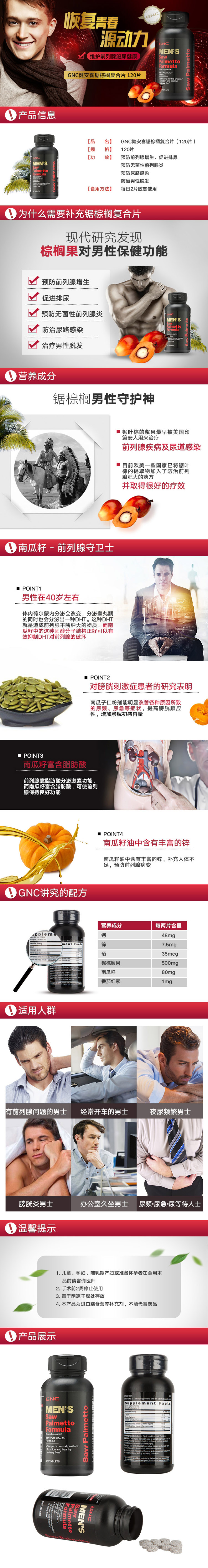 美国GNC健安喜锯棕榈复合片120片