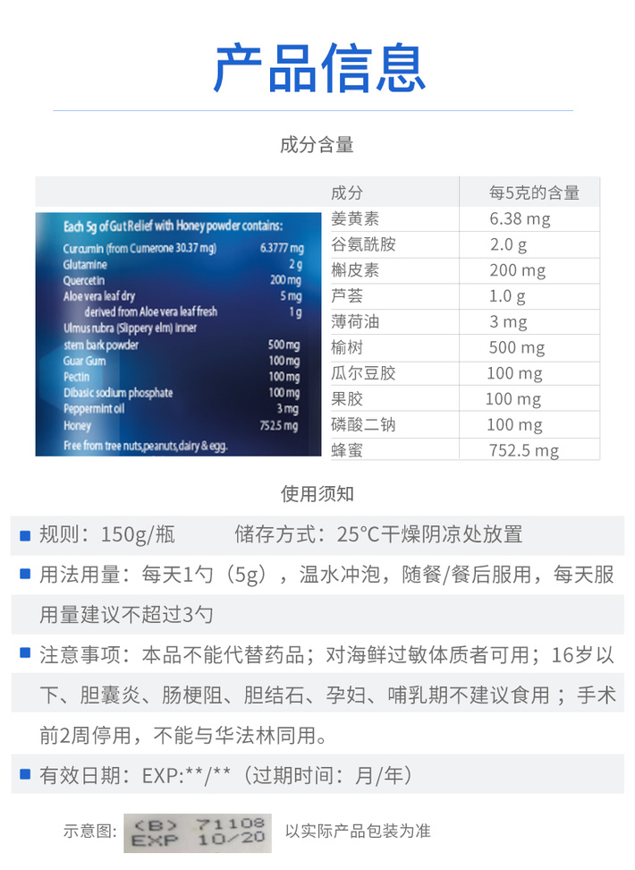 【香港直邮】澳洲Nutrition Care 纽新宝 养胃粉 蜂蜜味 150g 养护肠胃