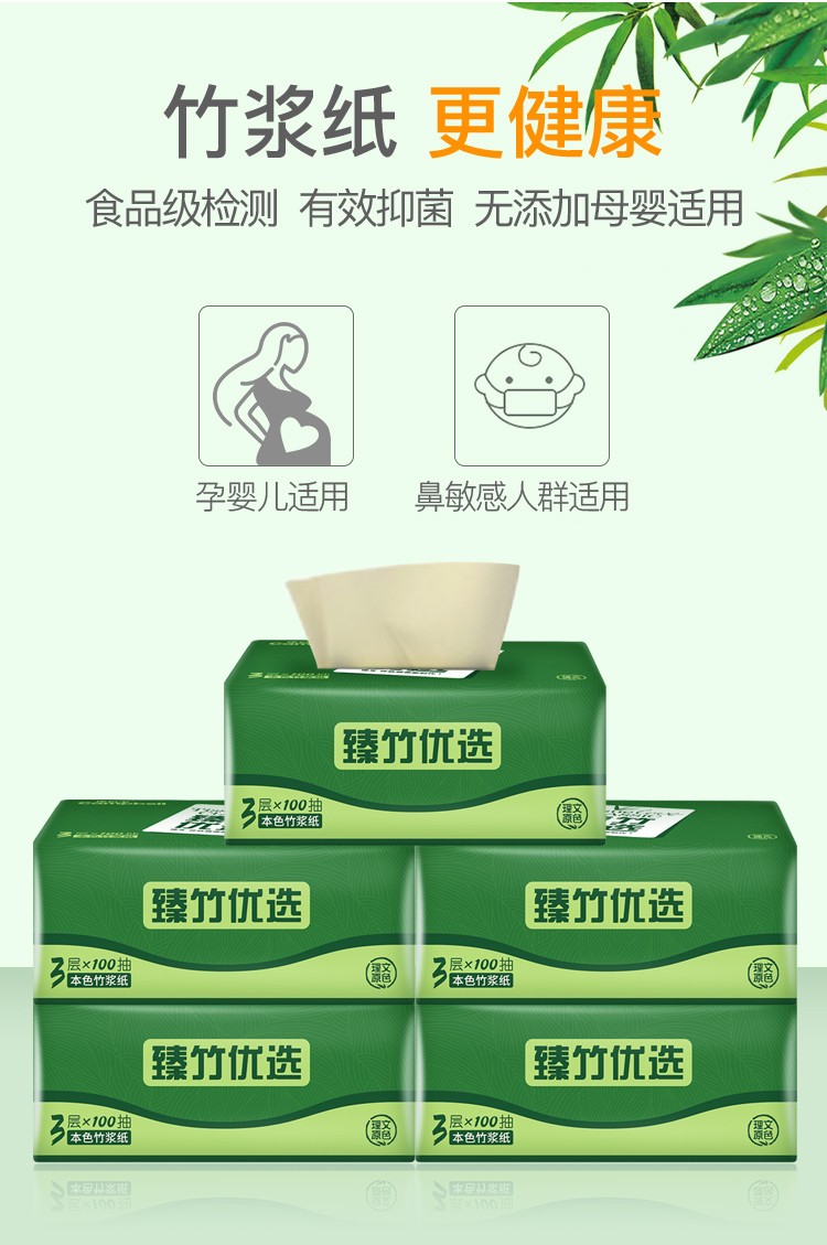 您所在的位置:首页 > 家庭清洁  > 清洁纸品 > 抽纸  > 康倍宝臻竹优选本色抽纸面巾纸巾竹浆餐巾纸家庭家用实惠装批发整箱5包