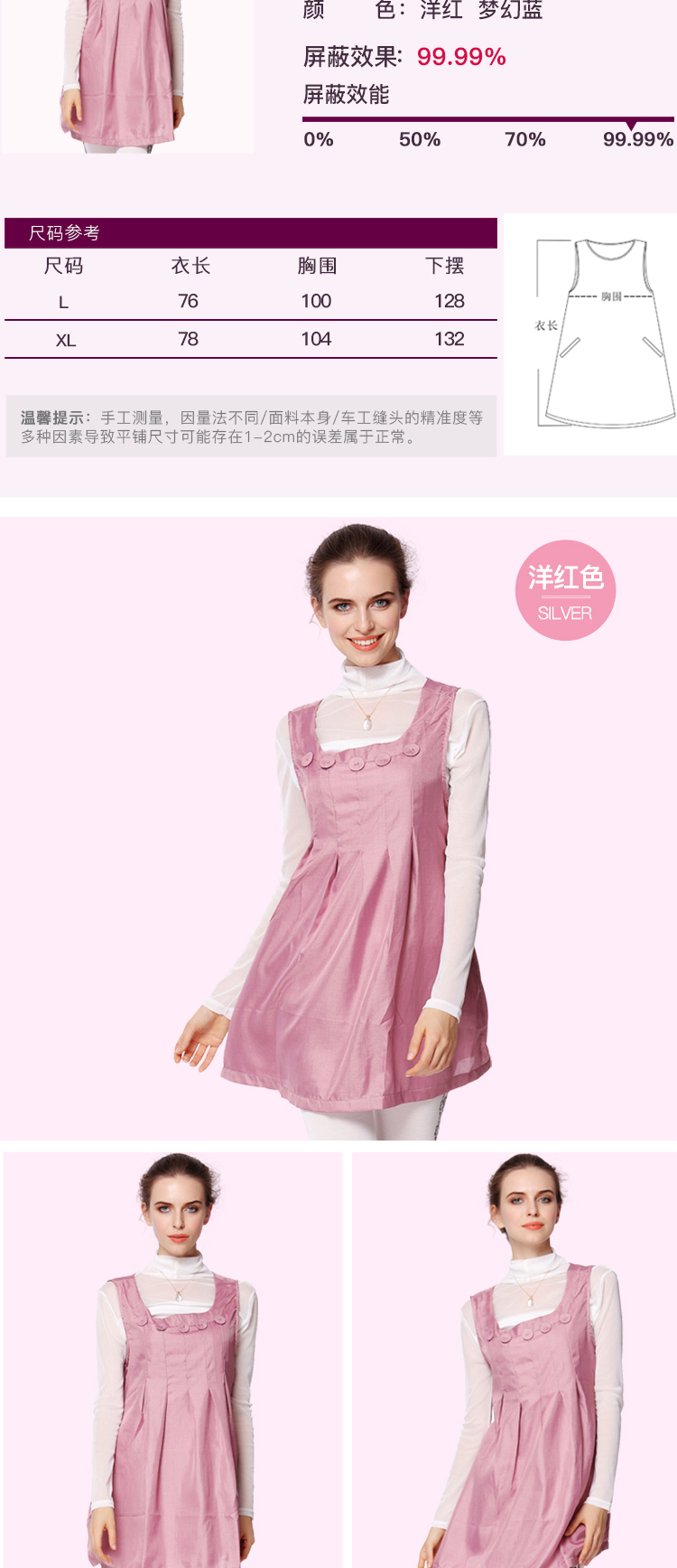 婧麒银纤维孕妇防辐射马甲连衣裙 洋红L码