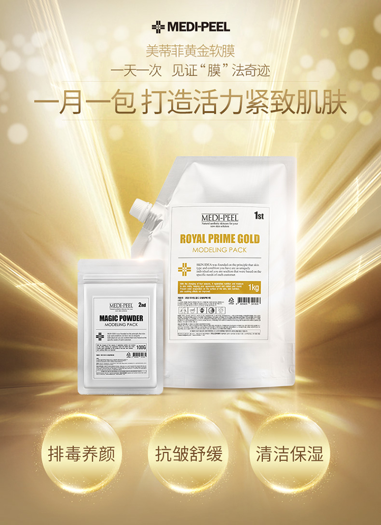 您所在的位置:首页 > 美妆护肤  > 面部护肤 > 面膜  > 【韩国直邮】韩国MEDI-PEEL美蒂菲黄金软膜粉修复面膜粉美容院专用1000g+100g