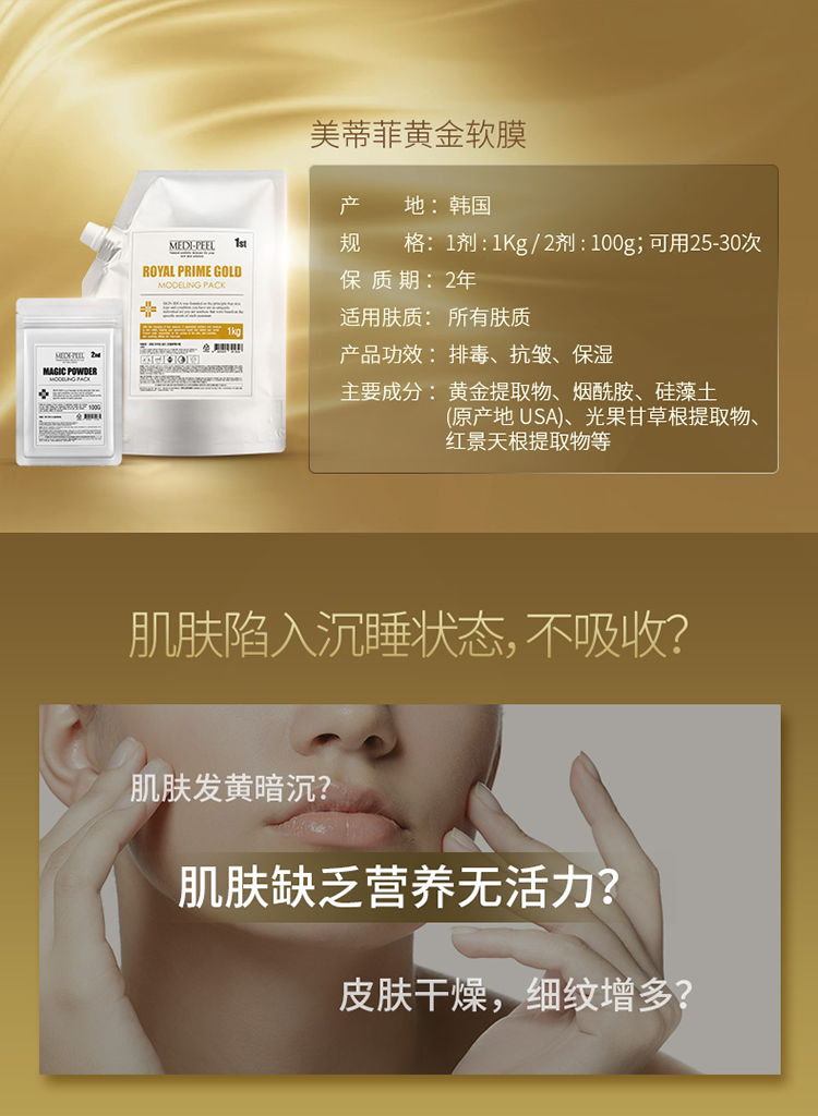 【韩国直邮】韩国MEDI-PEEL美蒂菲黄金软膜粉修复面膜粉美容院专用1000g+100g