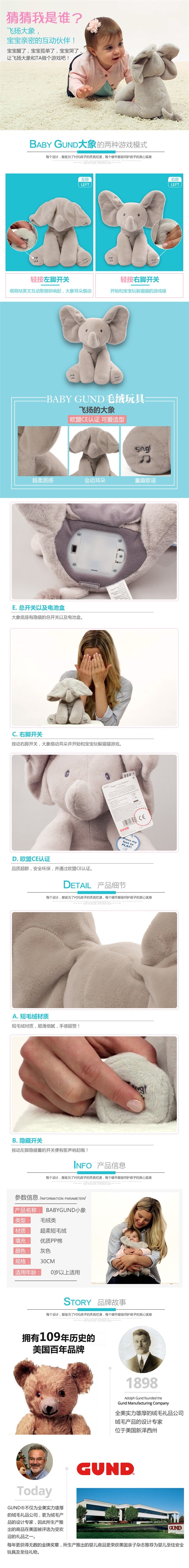 【美国直邮】 美版 BABY GUND 躲猫猫害羞儿童安抚玩具毛绒公仔会唱歌音乐玩偶30cm小象