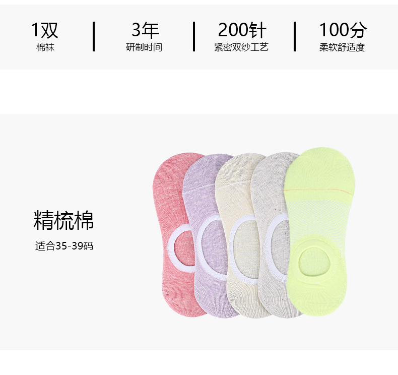 USM 5双装 防滑隐形女袜吸汗薄款棉质女袜 S801/2